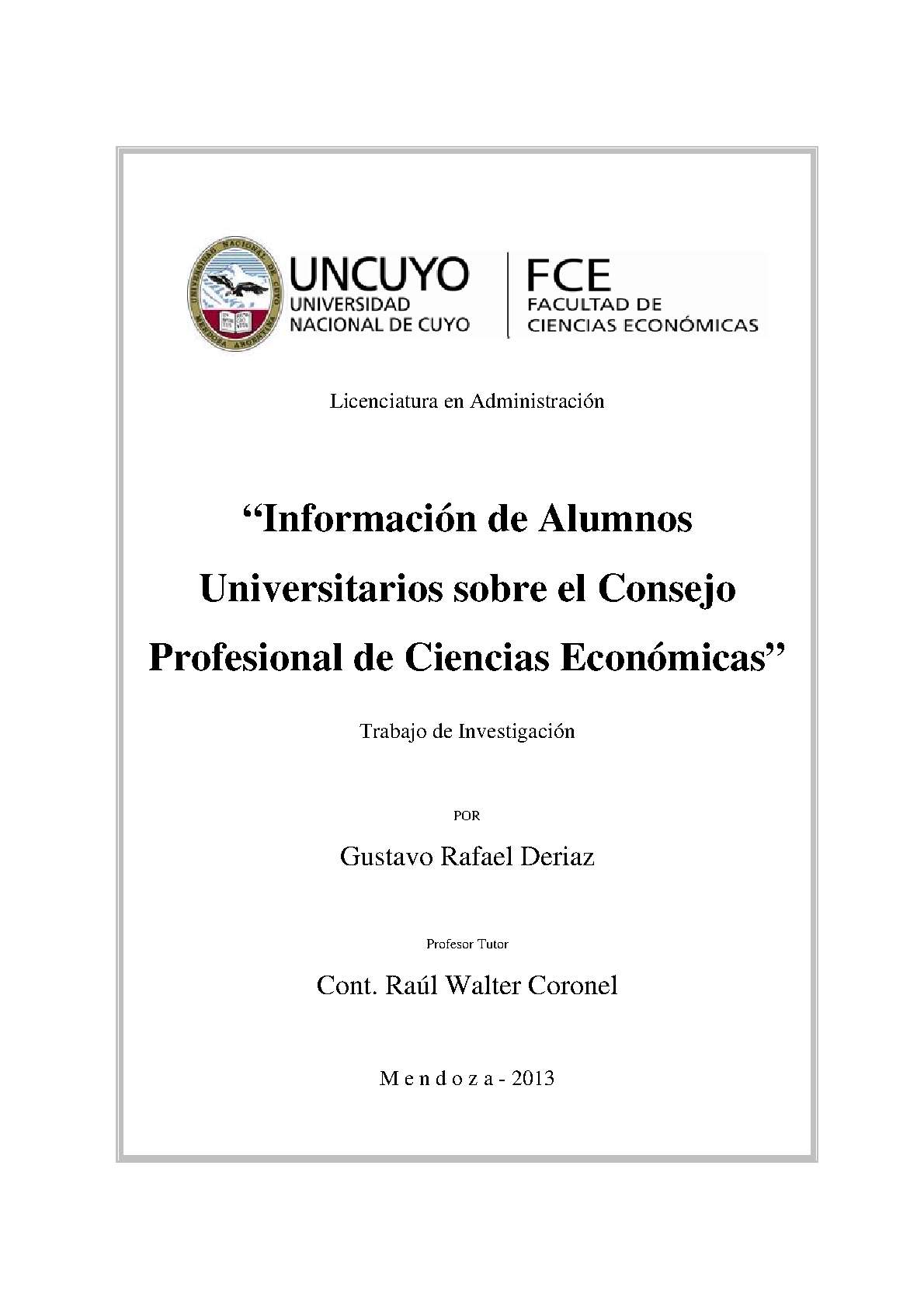 MENDOZA (ARGENTINA : PROVINCIA) - CIENCIAS ECONÓMICAS - ESTUDIANTES UNIVERSITARIOS - ALUMNOS - INFORMACIÓN - PERSONAL PROFESIONAL - CONSEJO PROFESIONAL EN CIENCIAS ECONÓMICAS DE MENDOZA