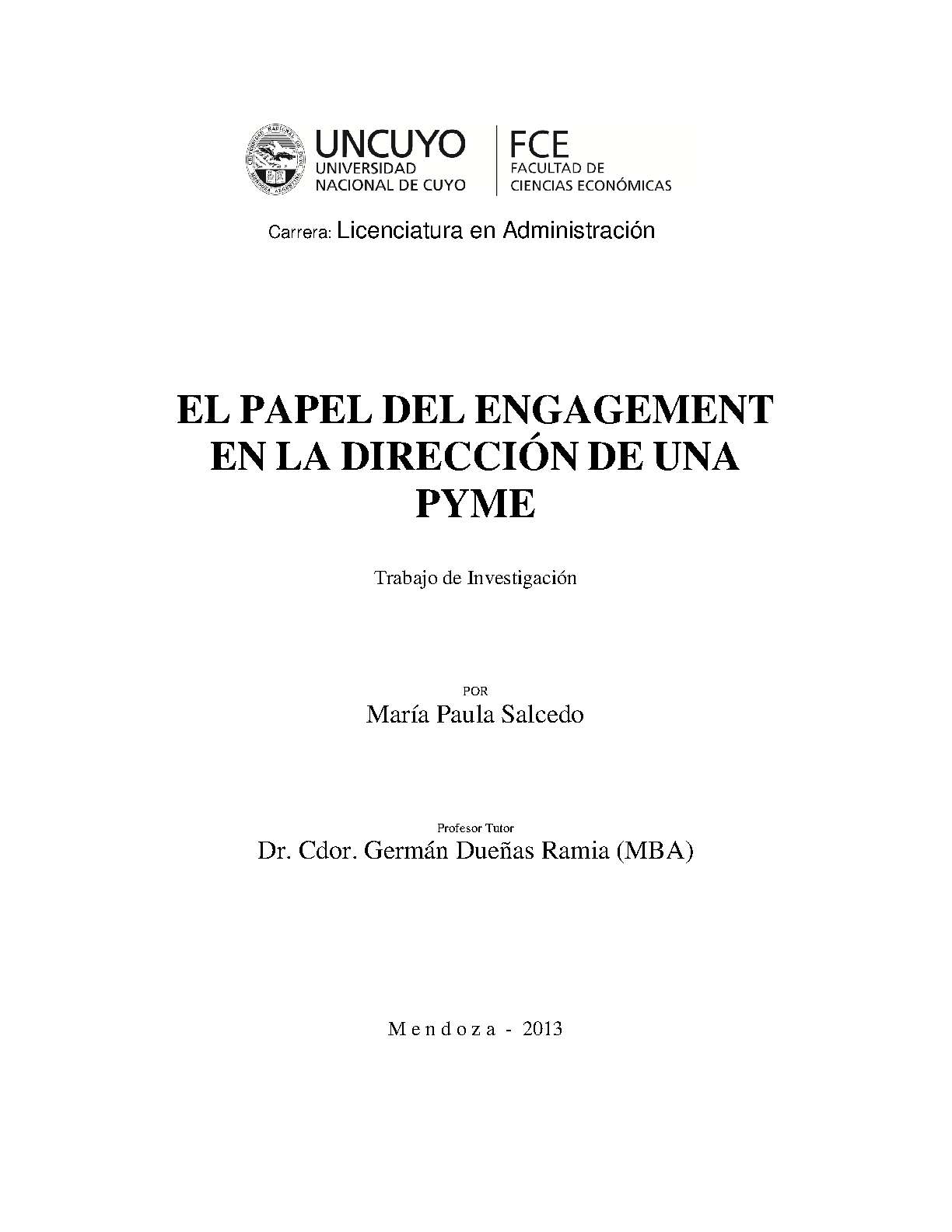 a una PyME mendocina y cuál es su rol en la dirección de la compañía. La primera parte del trabajo hace referencia al marco teórico, la segunda parte plantea los aspectos metodológicos sobre los que se basa la investigación, en la tercera parte se realiza la presentación del caso de estudio y presentación de los resultados del estudio empírico, y finalmente se exponen las conclusiones y la propuesta de mejora.