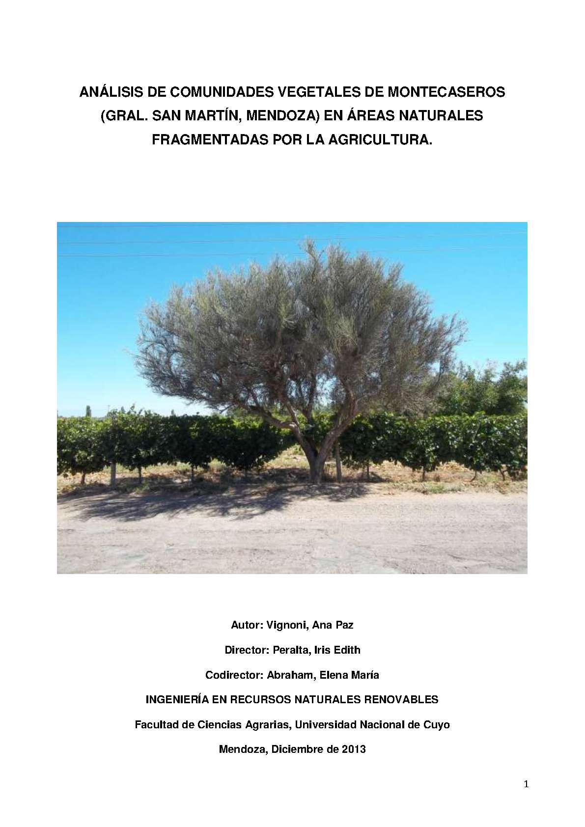 Análisis de comunidades vegetales de Montecaseros (Gral. San Martín, Mendoza) en áreas naturales fragmentadas por la agricultura