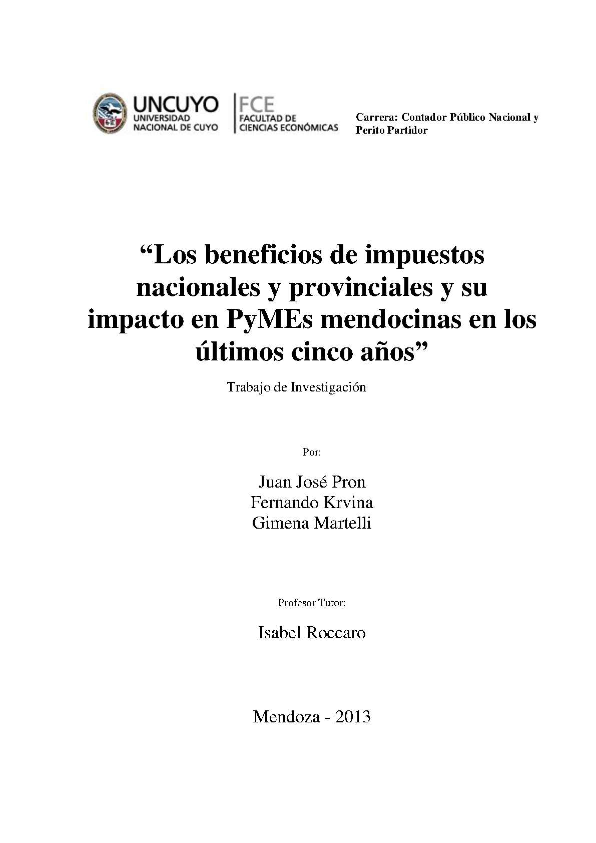 MENDOZA (ARGENTINA : PROVINCIA) - PEQUEÑA Y MEDIANA EMPRESA - INCENTIVOS FISCALES - IMPUESTOS NACIONALES - RECAUDACIÓN DE IMPUESTOS - IMPUESTOS PROVINCIALES - BENEFICIOS TRIBUTARIOS