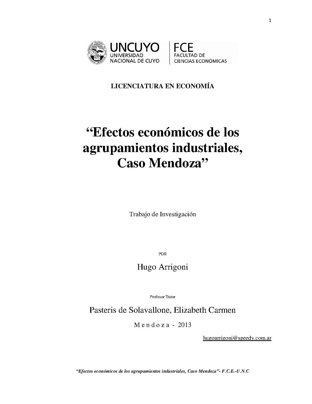 Arrigoni, Hugo. (2013). Efectos económicos de los agrupamientos industriales, Caso Mendoza: (Trabajo final de grado). Mendoza, Universidad Nacional de Cuyo. Facultad de Ciencias Económicas.