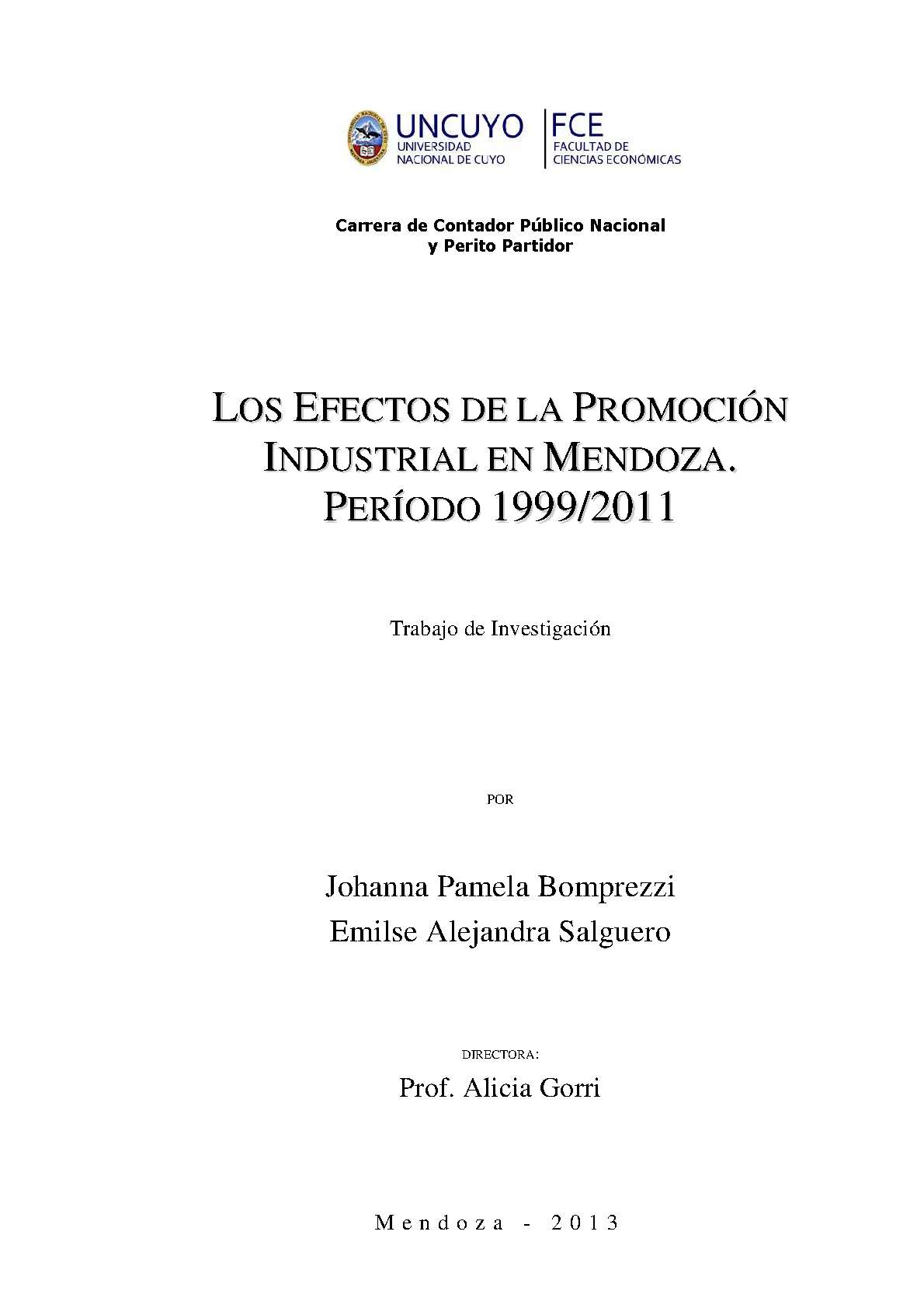 Efectos económicos de la promoción industrial en Mendoza - Federalismo fiscal - Empleo industrial - Inversión en Mendoza