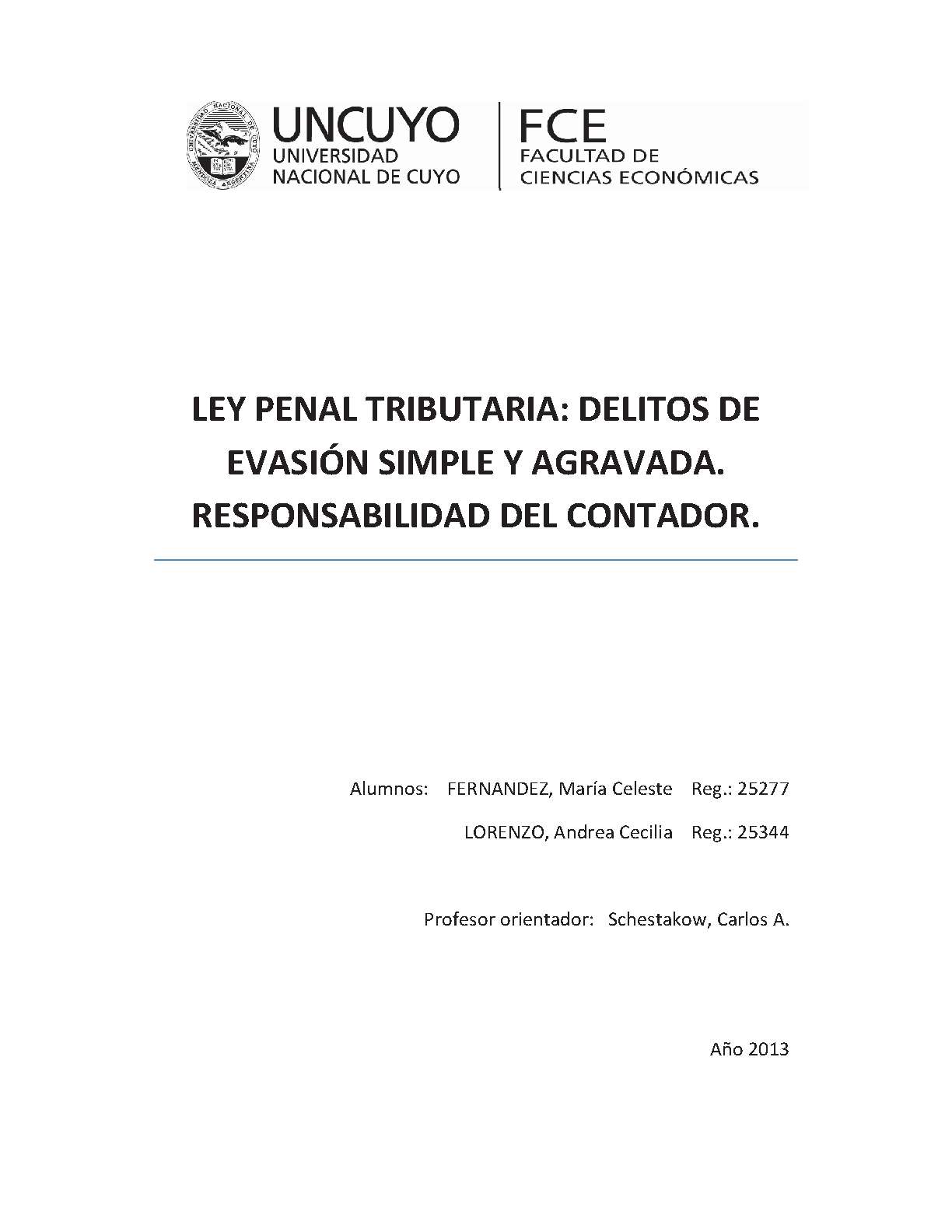 Fernández, María Celeste; Lorenzo Álvarez, Andrea Cecilia. (2013). Ley penal tributaria: delitos de evasión simple y agravada : responsabilidad del contador (Trabajo final de grado). Mendoza, Universidad Nacional de Cuyo. Facultad de Ciencias Económicas.