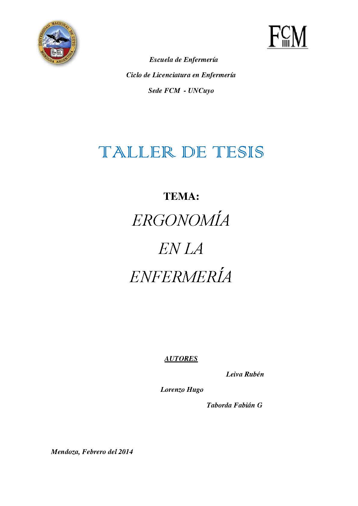 Leiva, Rubén; Lorenzo, Hugo; Taborda, Fabián G.. (2014). Ergonomía en la enfermería: (Tesina de grado). Mendoza, Universidad Nacional de Cuyo. Facultad de Ciencias Médicas. Escuela de Enfermería..