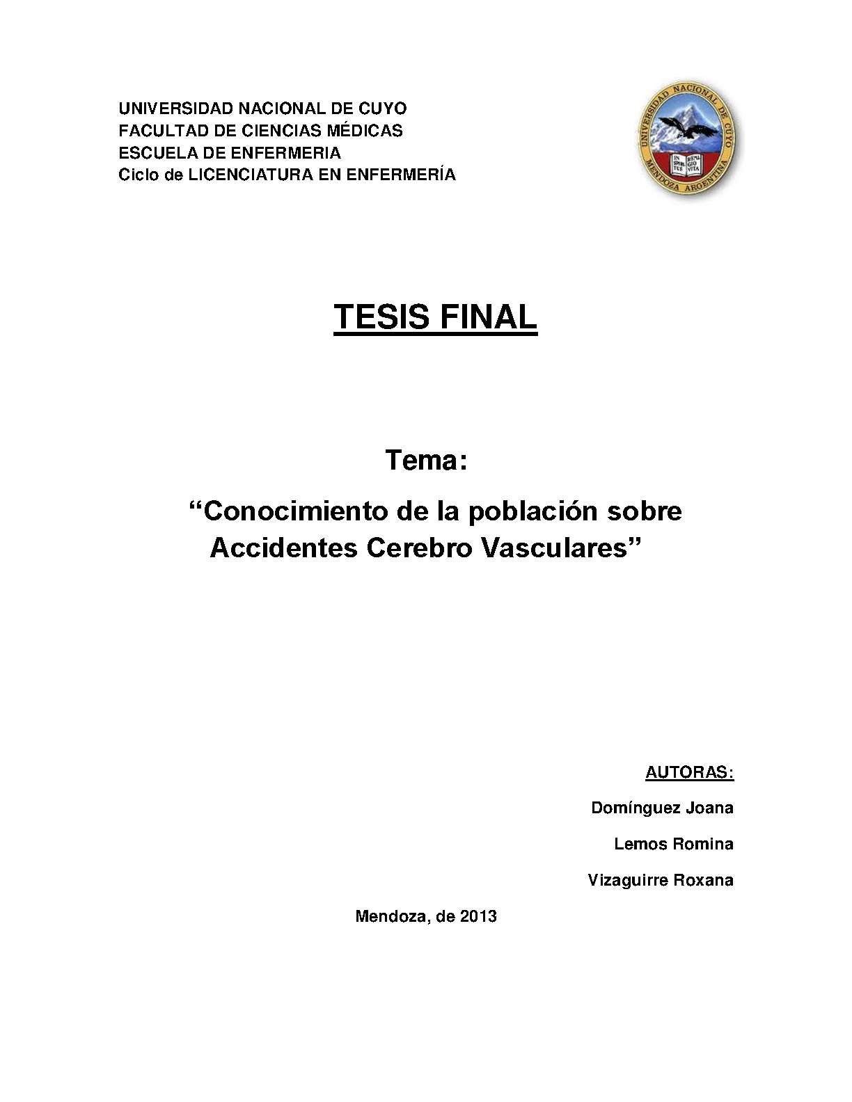 EDUCACIÓN EN SALUD - ACCIDENTE CEREBROVASCULAR - ESTILO DE VIDA - CONOCIMIENTOS, ACTITUDES Y PRÁCTICA EN SALUD - HOSPITAL CENTRAL (MENDOZA, ARGENTINA)