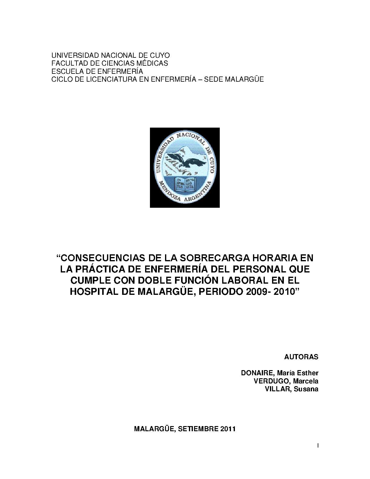 Consecuencias de la sobrecarga horaria en la práctica de enfermería del personal que cumple con doble función laboral en el Hospital de Malargüe, período 2009-2010