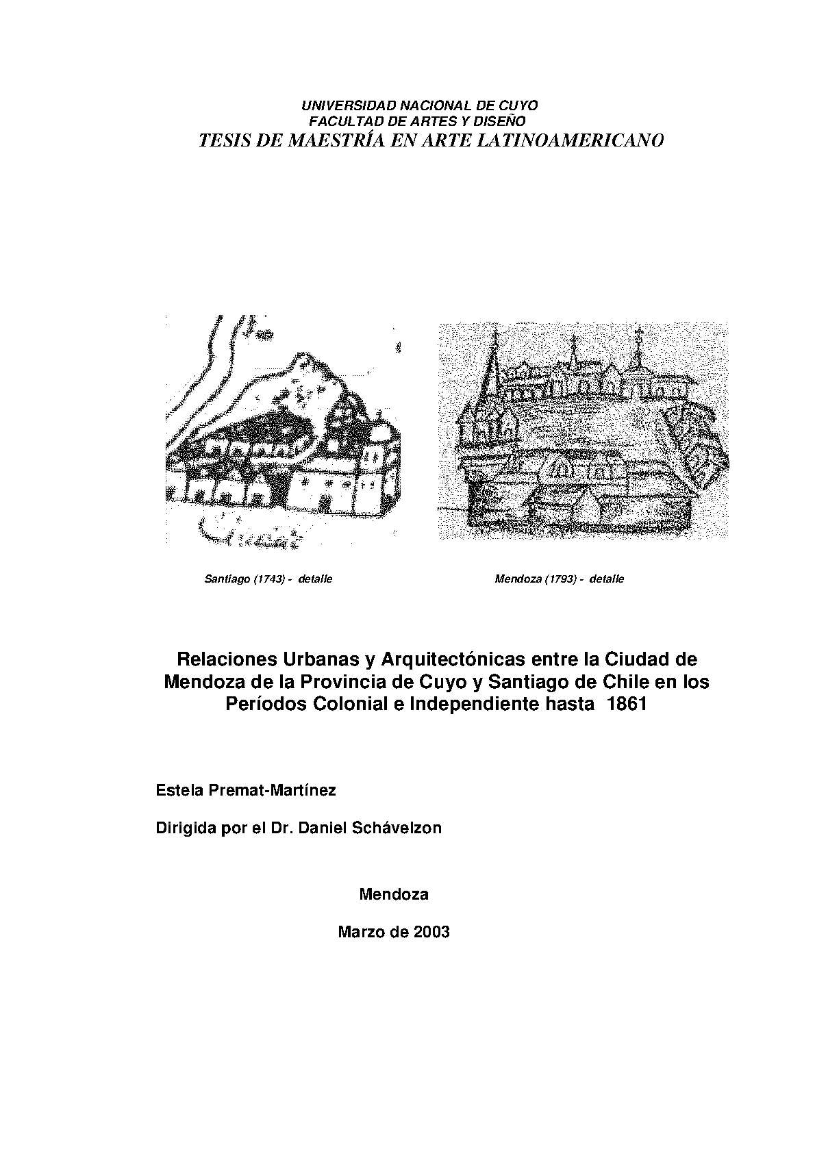 Relaciones urbanas y arquitectónicas entre la ciudad de Mendoza de la Provincia de Cuyo y Santiago de Chile en los periodos colonial e independiente hasta 1861