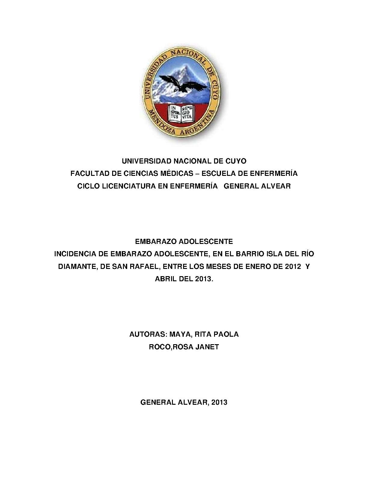 incidencia de embarazo adolescente, en el barrio Isla del Río Diamante, de San Rafael, entre los meses de enero de 2012 y abril del 2013
