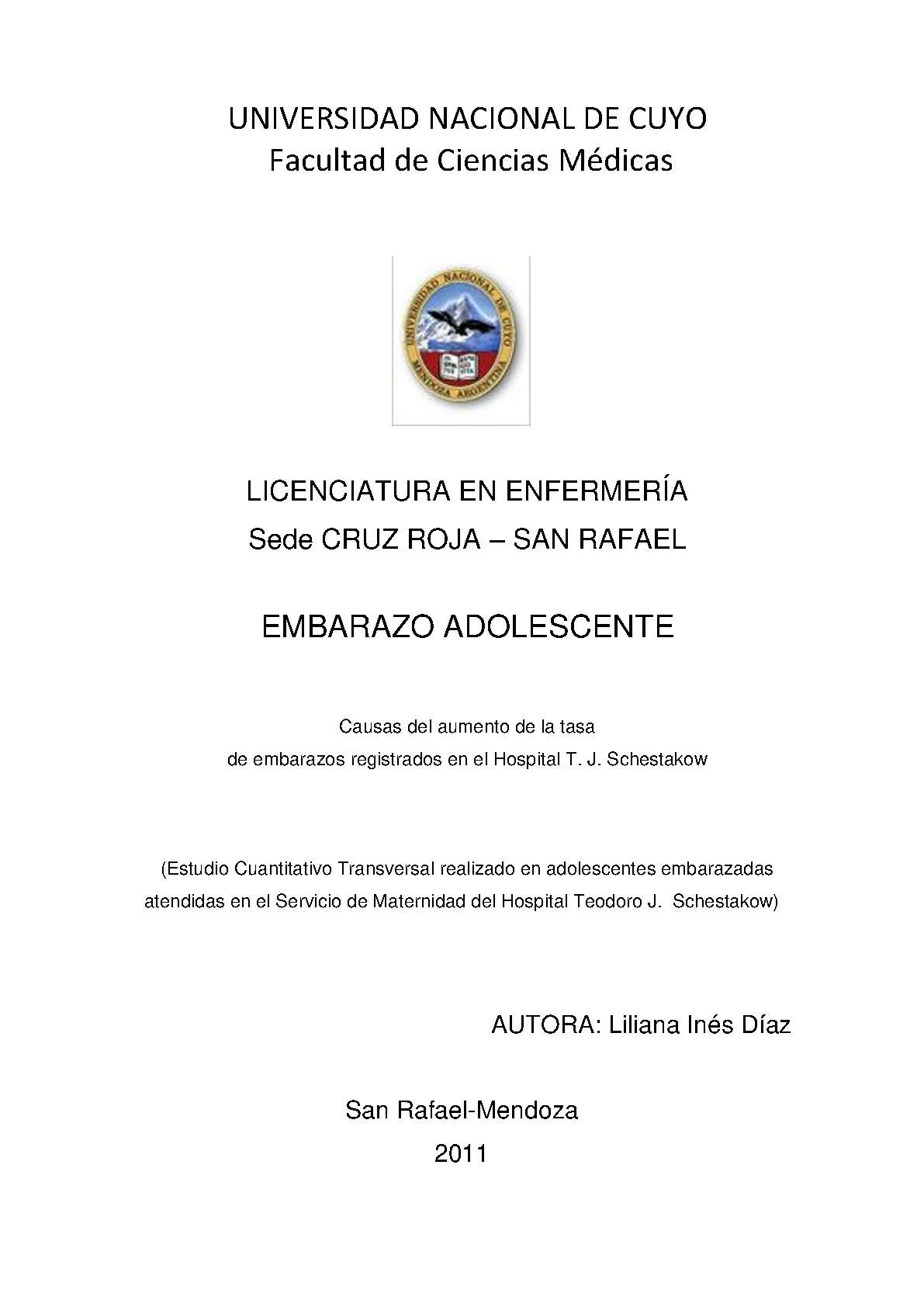 causas del aumento de la tasa de embarazos registrados en el Hospital T. J. Schestakow