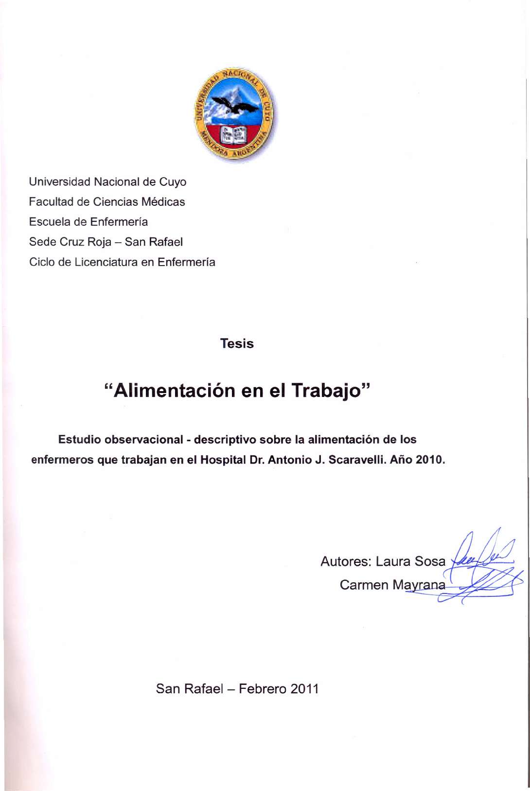 Universidad Nacional de Cuyo. Facultad de Ciencias Médicas. Escuela de Enfermería.