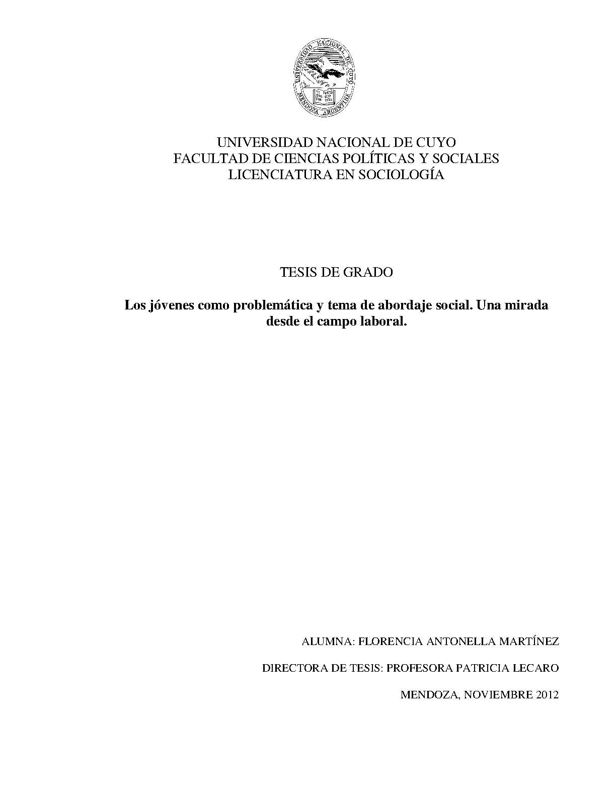 El presente trabajo de investigación titulado “Los jóvenes como problemática y tema de abordaje social. Una mirada desde el campo laboral", es un trabajo que pretende recabar la producción científica desarrollada por especialistas en la temática entre los años 1990 y 2010 aproximadamente.