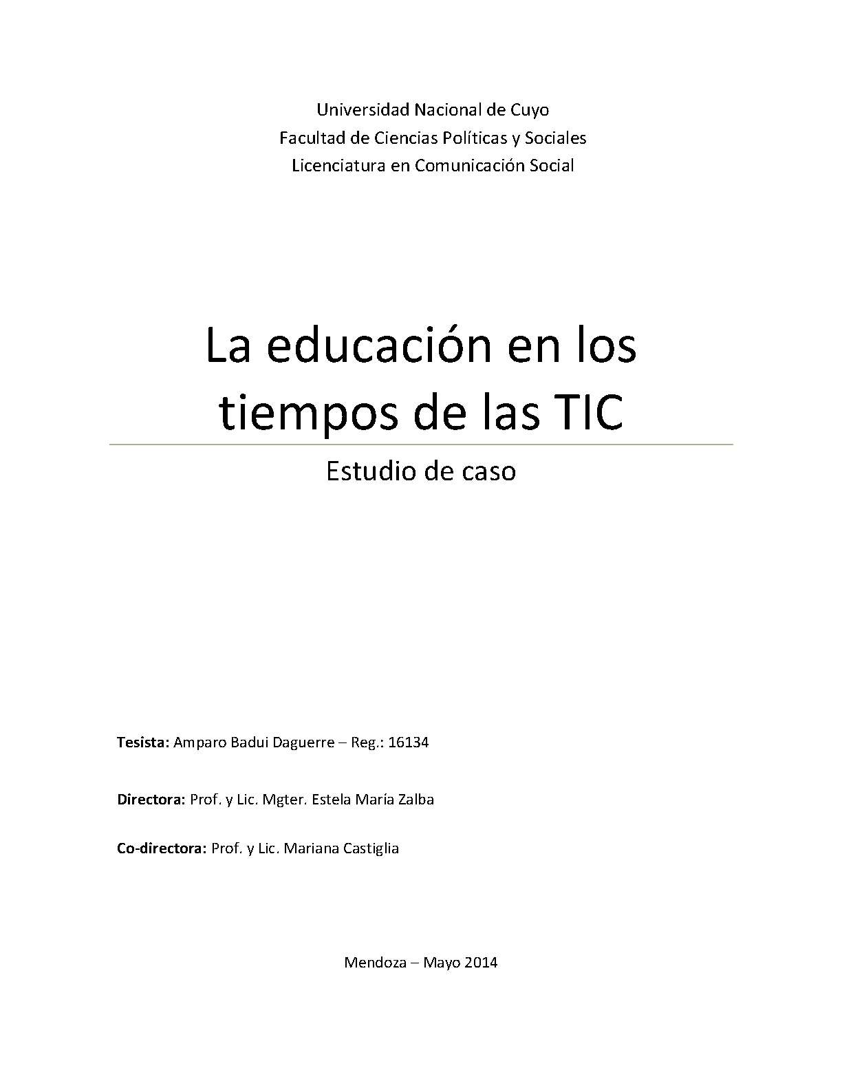 Badui Daguerre, Amparo. (2014). La educación en los tiempos de las TIC: estudio de caso (Tesina de grado). Mendoza, Universidad Nacional de Cuyo. Facultad de Ciencias Políticas y Sociales .
