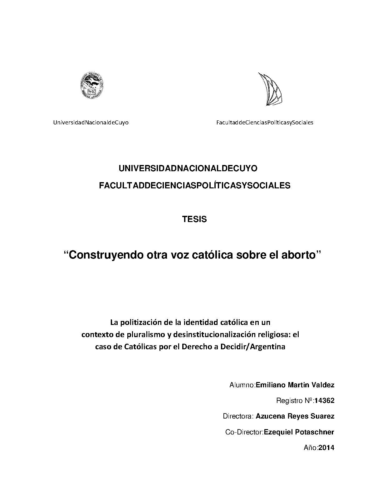 la politización de la identidad católica en un contexto de pluralismo y desinstitucionalización religiosa : el caso de Católicas por el Derecho a Decidir/Argentina