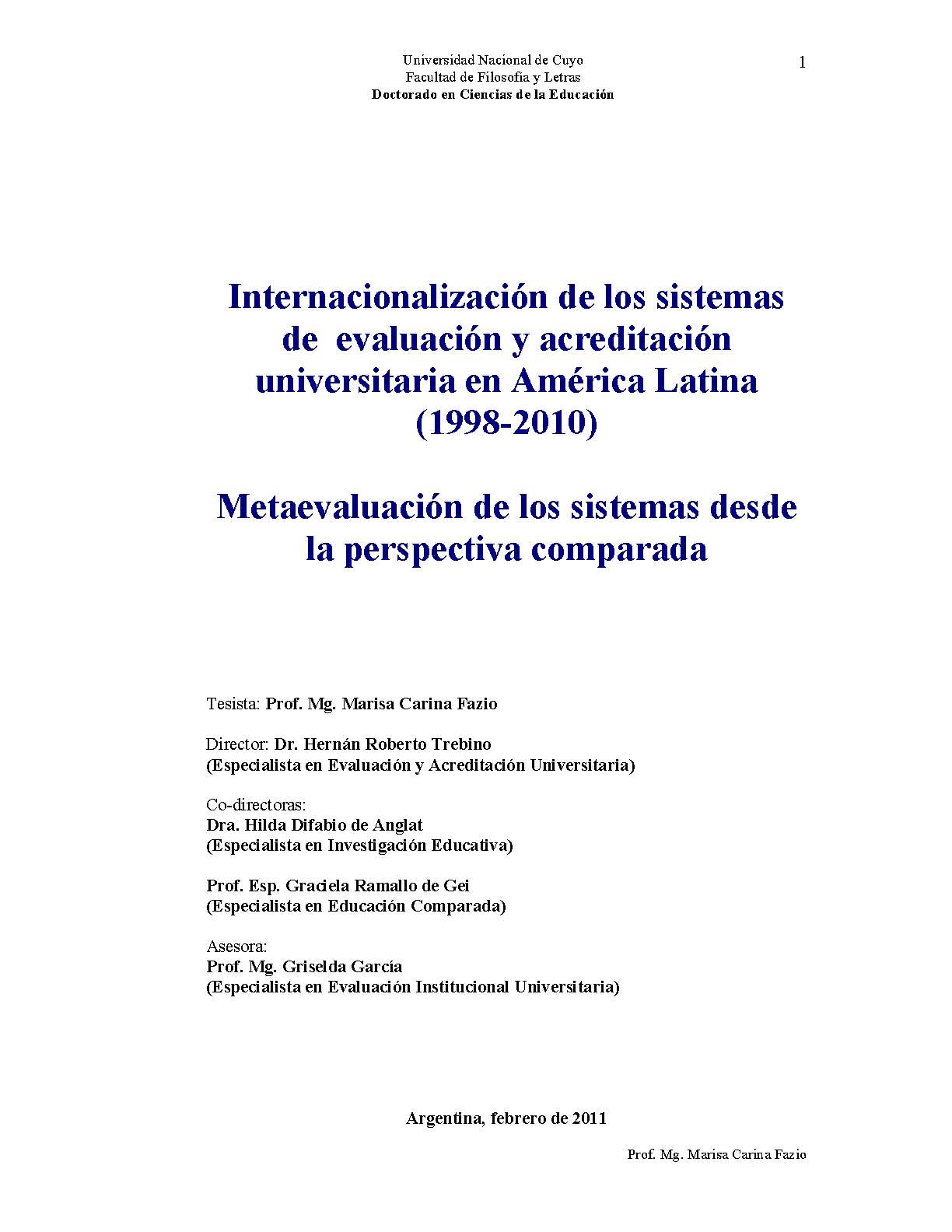 Internacionalización de los sistemas de evaluación y acreditación universitaria en América Latina (1998-2010)
