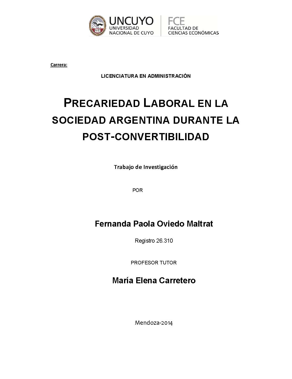 Precariedad laboral en la sociedad argentina durante la postconvertibilidad