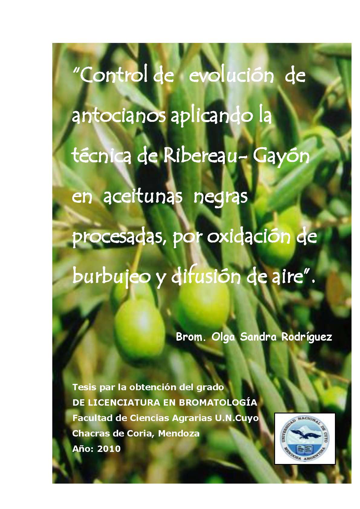 Control de evolución de antocianos, aplicando la técnica de Ribereau-Gayón en aceitunas negras procesadas, por oxidación de burbujeo y difusión de aire