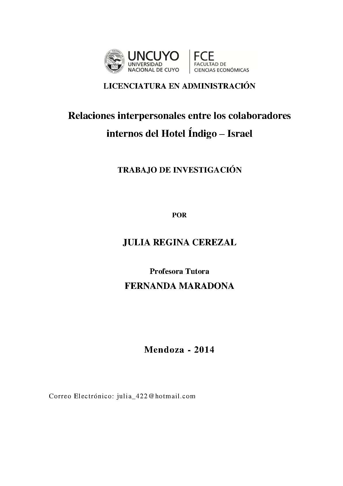 Relaciones interpersonales entre los colaboradores internos del Hotel Índigo – Israel