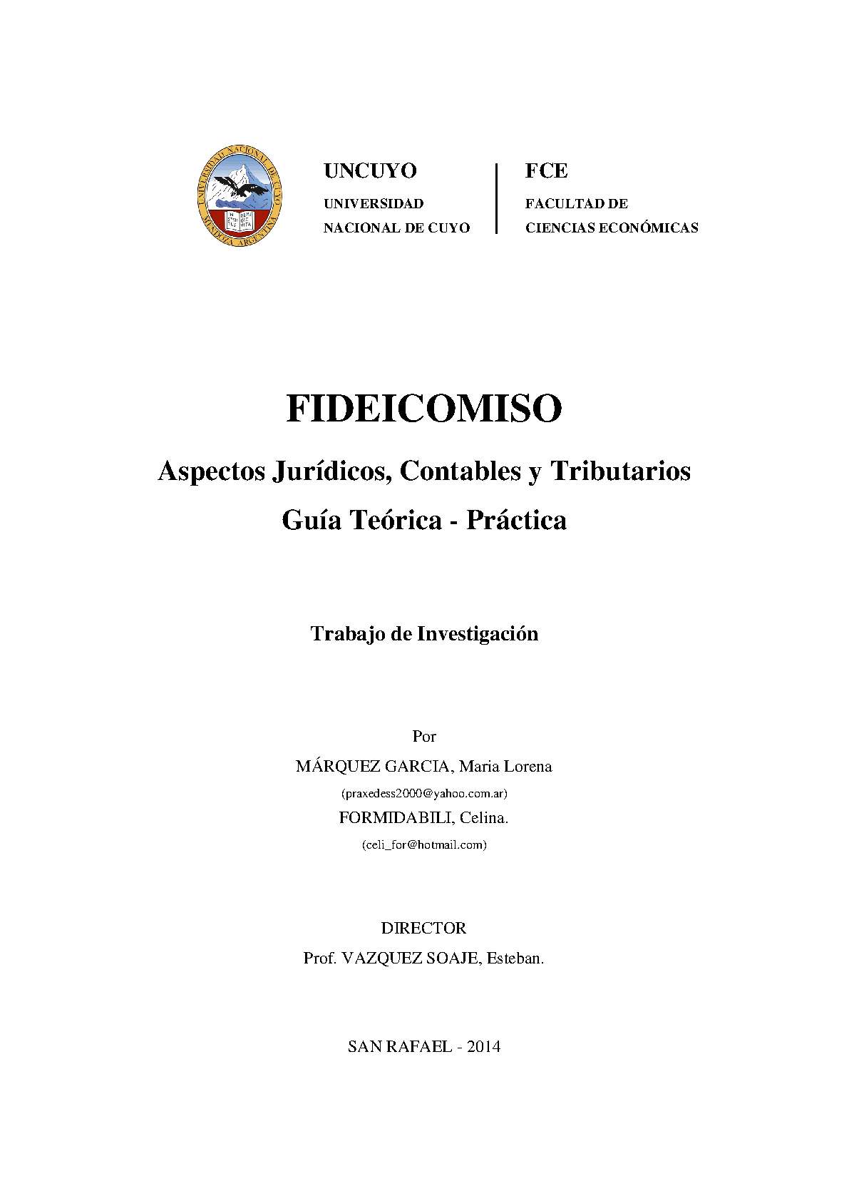 Márquez García, María Lorena; Formidabili, María Celina. (2015). Fideicomiso: aspectos Jurídicos, Contables y Tributarios. Guía Teórica - Práctica (Trabajo final de grado). Mendoza, Universidad Nacional de Cuyo. Facultad de Ciencias Económicas.