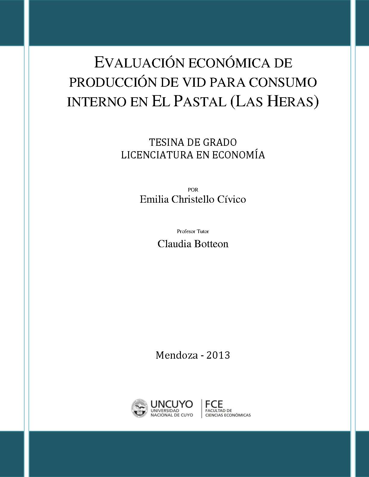 EL PASTAL (LAS HERAS, MENDOZA, ARGENTINA) - ANÁLISIS ECONÓMICO - ANÁLISIS DE COSTO-BENEFICIO - EVALUACIÓN DE PROYECTOS - ESTUDIOS DE MERCADO - VITICULTURA - RIESGO DE INVERSIÓN - UVAS DE MESA - UVAS PARA VINO - CONSUMO INTERIOR