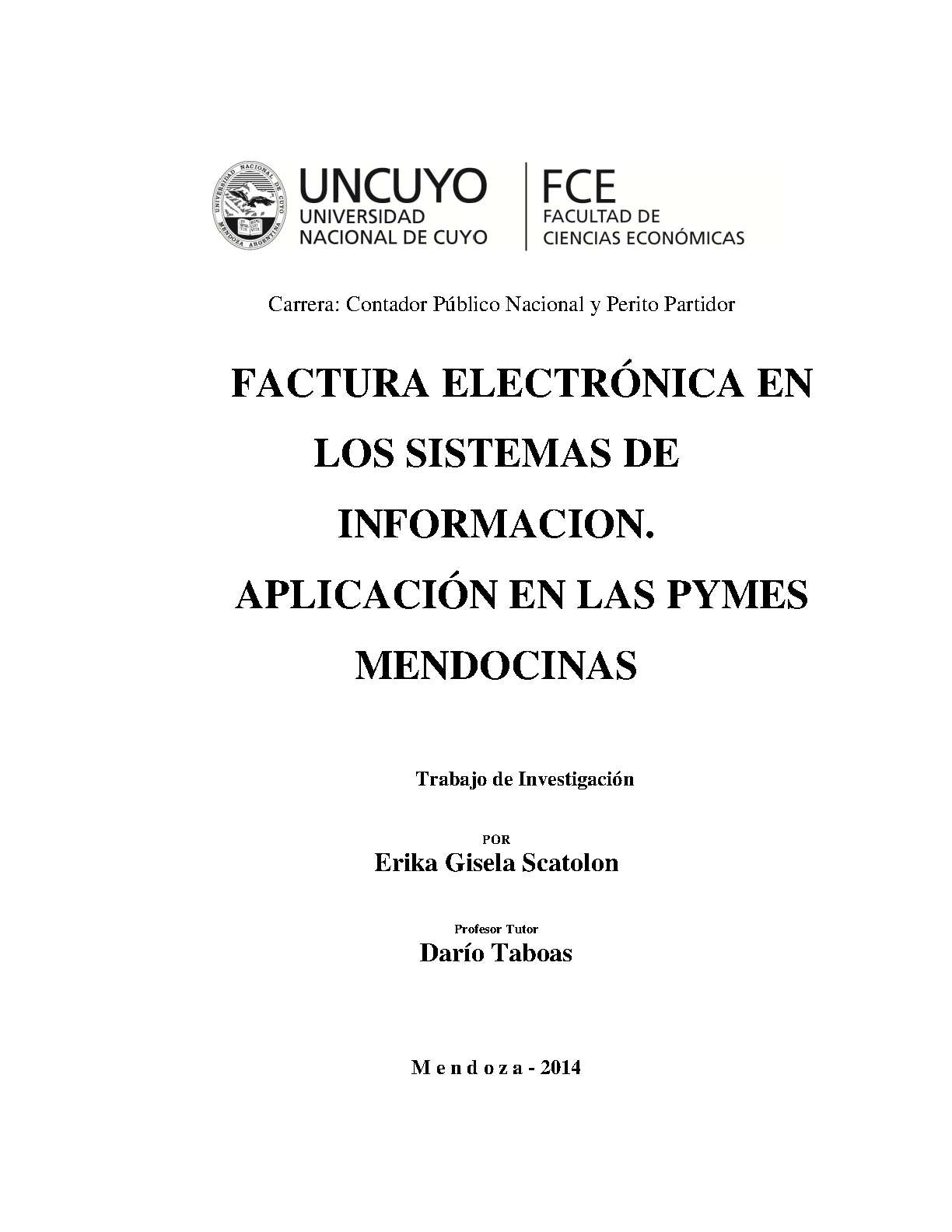 Scatolon, Erika Gisela. (2014). Factura electrónica en los sistemas de información: aplicación en las Pymes mendocinas (Trabajo final de grado). Mendoza, Universidad Nacional de Cuyo. Facultad de Ciencias Económicas.
