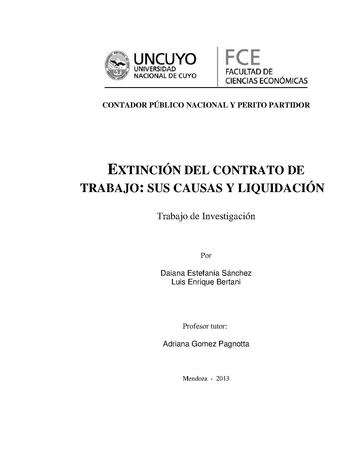 Sánchez, Daiana Estefanía; Bertani, Luis Enrique. (2013). Extinción del contrato de trabajo: sus causas y liquidación (Trabajo final de grado). Mendoza, Universidad Nacional de Cuyo. Facultad de Ciencias Económicas.