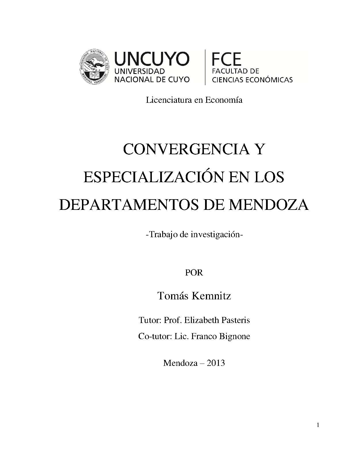 Kemnitz, Tomás Gerardo. (2013). Convergencia y especialización en los departamentos de Mendoza: (Trabajo final de grado). Mendoza, Universidad Nacional de Cuyo. Facultad de Ciencias Económicas.