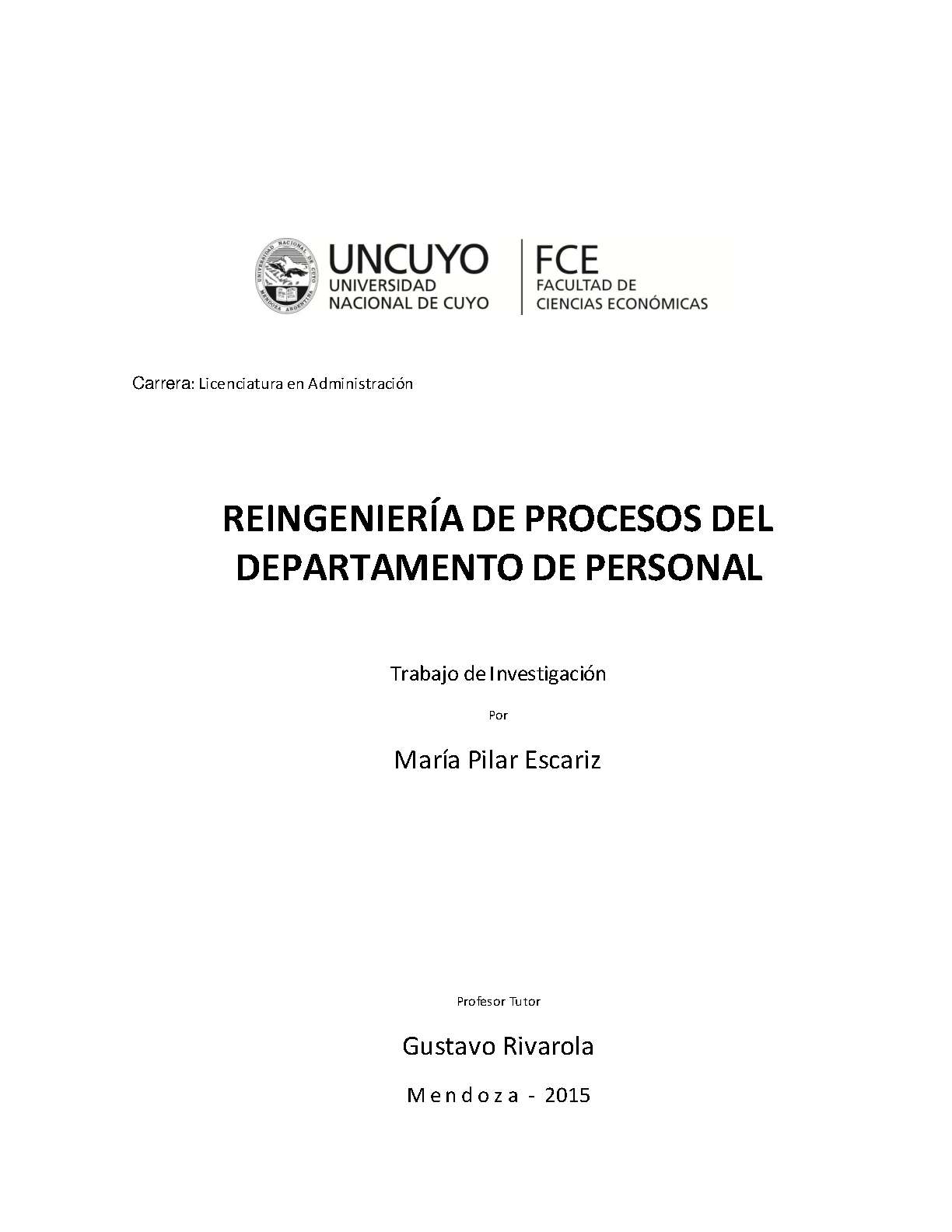 Escariz, María Pilar. (2015). Reíngenieria de procesos del departamento de personal: (Trabajo final de grado). Mendoza, Universidad Nacional de Cuyo. Facultad de Ciencias Económicas.