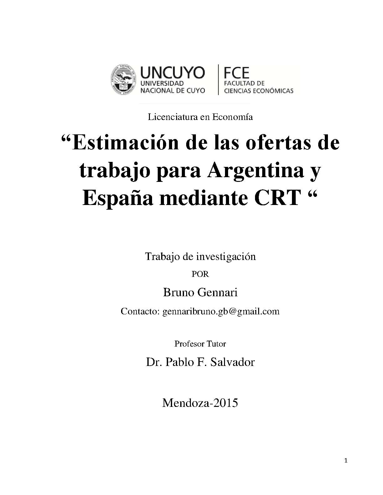 Estimación de las ofertas de trabajo para Argentina y España mediante CRT