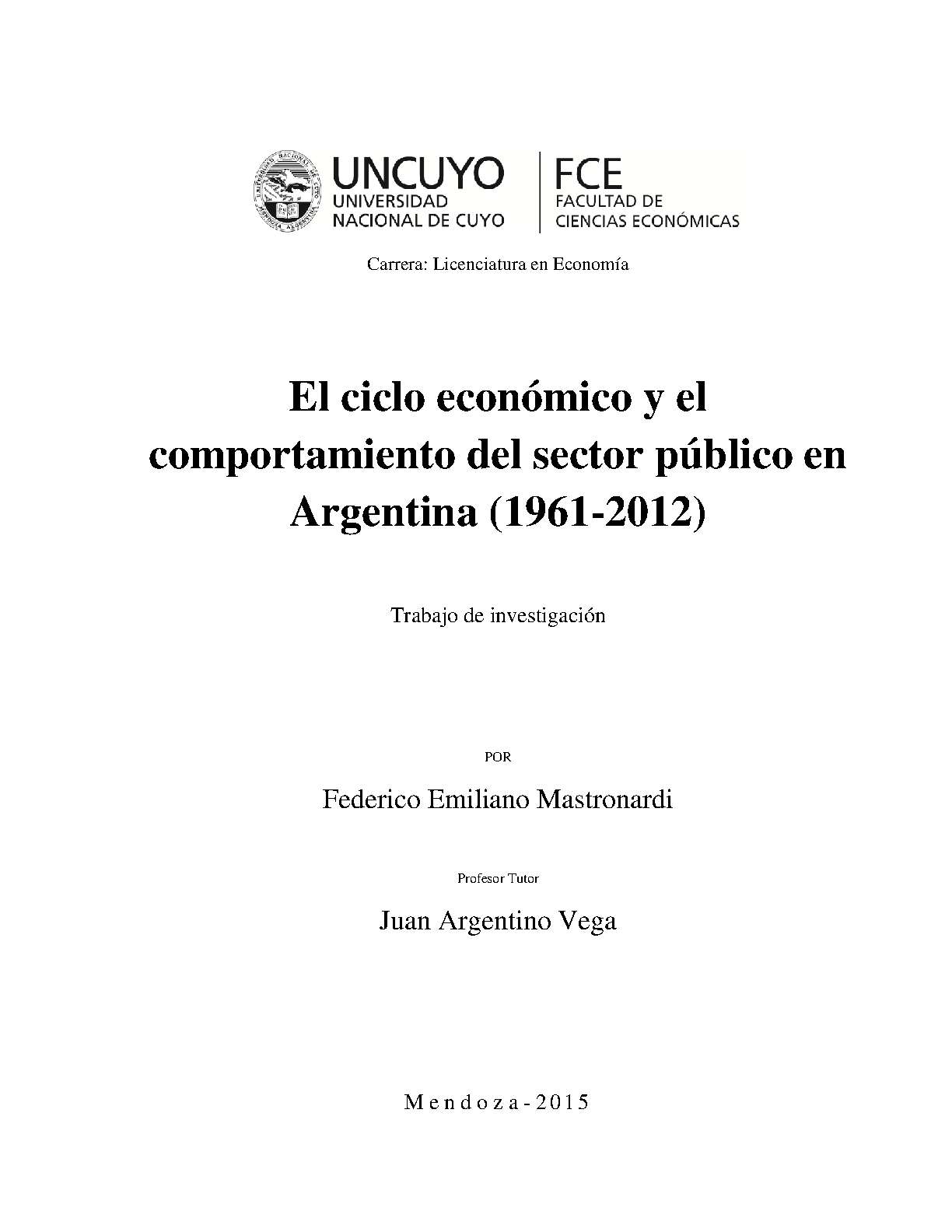 El ciclo económico y el comportamiento del sector público en Argentina