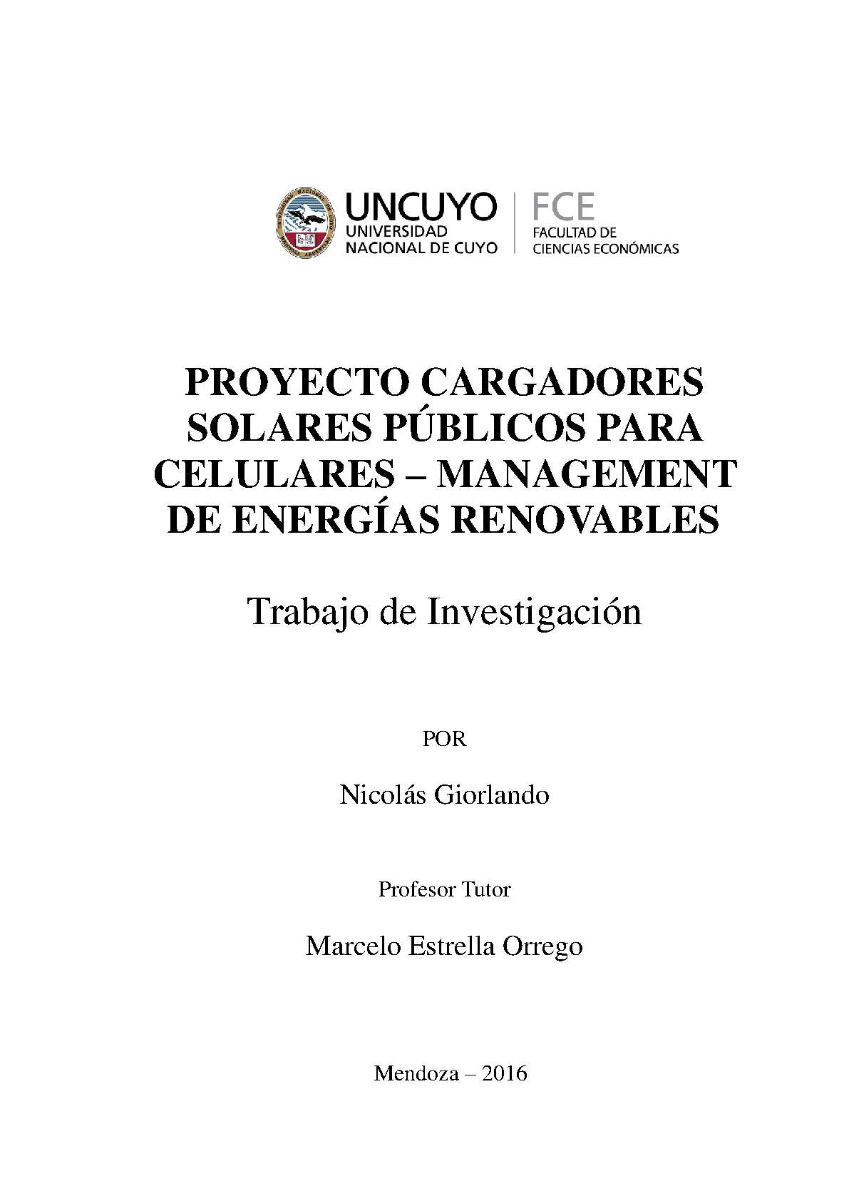 Proyecto cargadores solares público para celulares-management de energías renovables