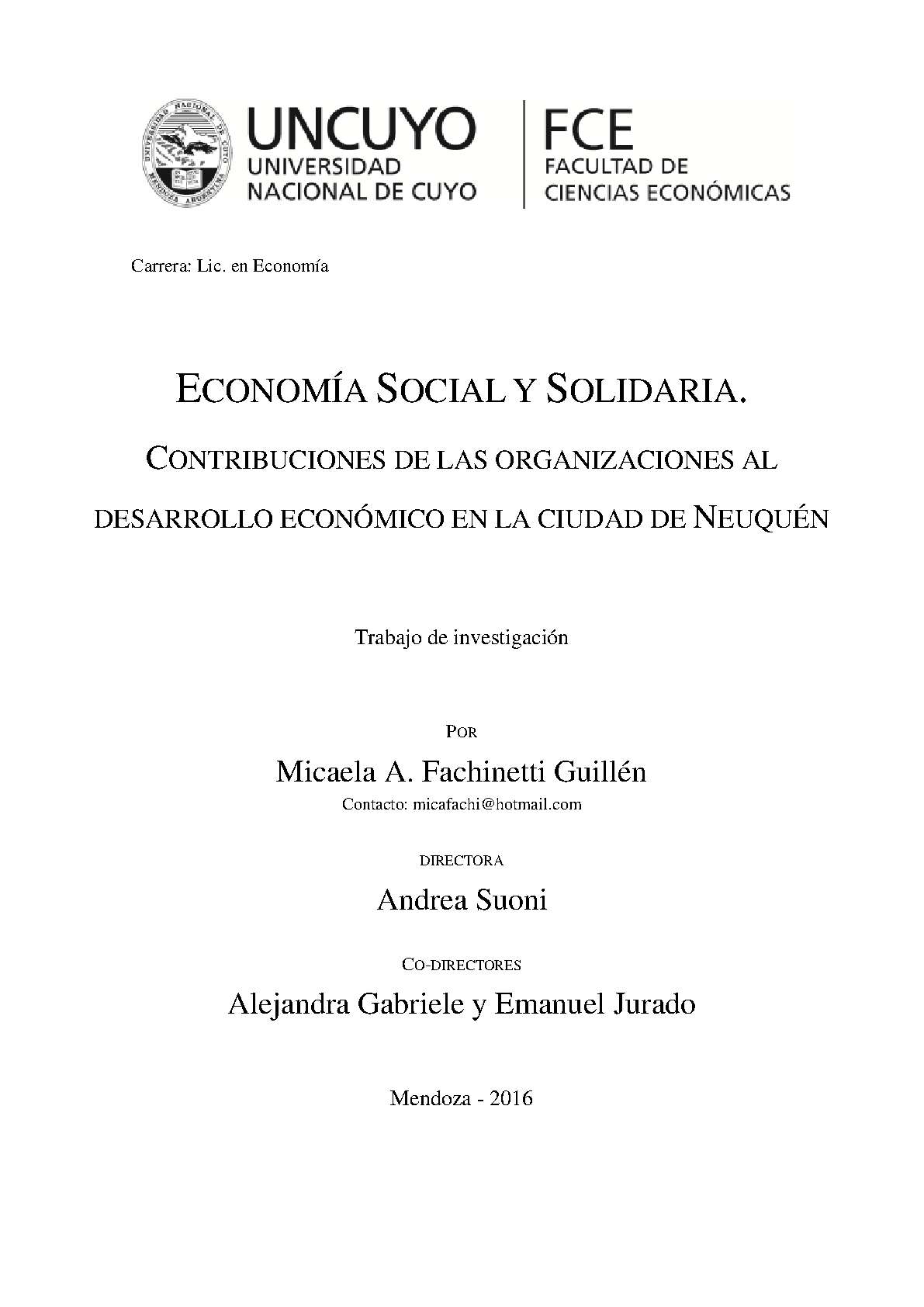 Fachinetti Guillén, Micaela A.. (2016). Economía social y solidaria: contribuciones de las organizaciones al desarrollo económico en la ciudad de Neuquén (Trabajo final de grado). Mendoza, Universidad Nacional de Cuyo. Facultad de Ciencias Económicas.