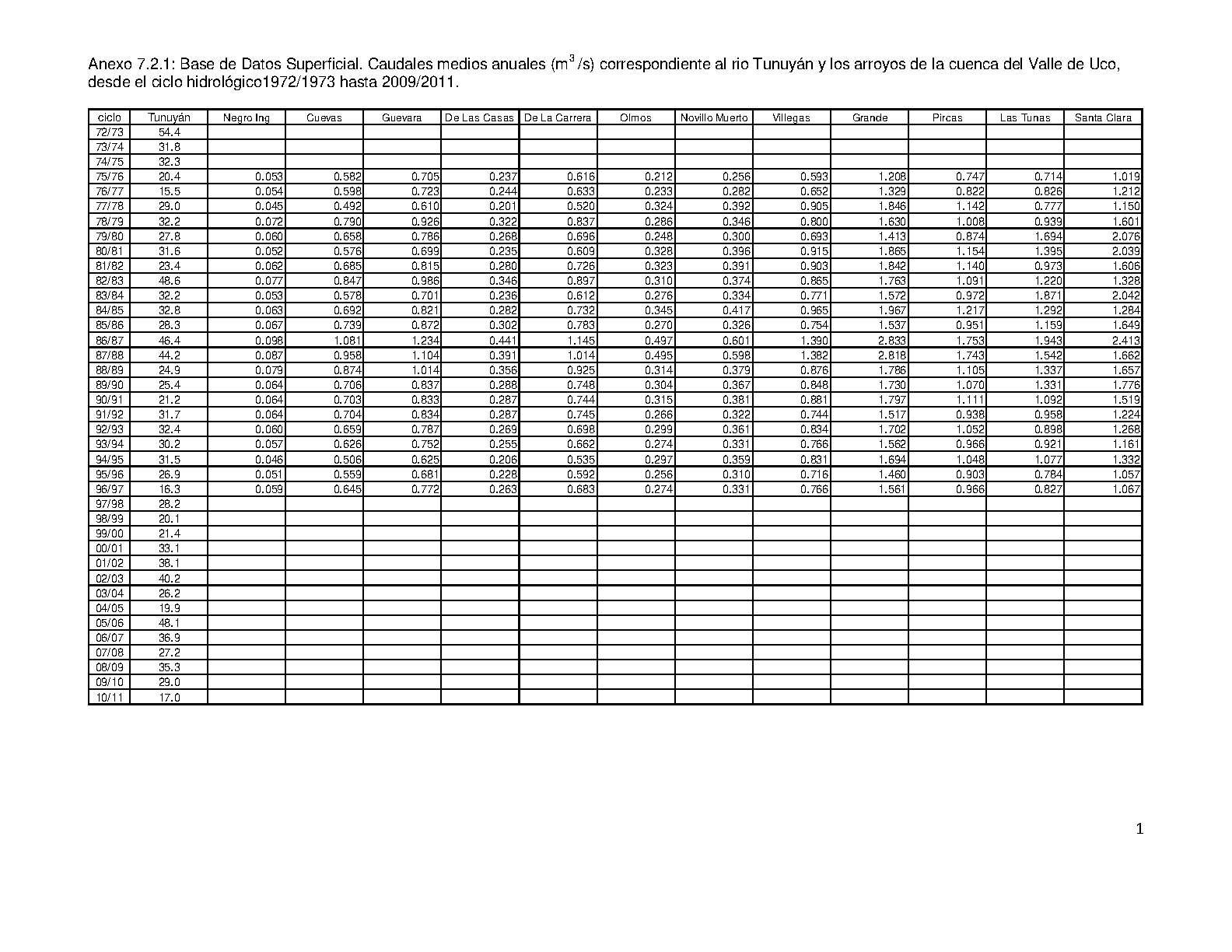 Para llevarlo a cabo se recopiló información de caudales medios mensuales históricos del río Tunuyán en la estación Valle de Uco y de los arroyos afluentes, como también de los niveles estáticos de agua subterránea de la red de pozos de monitoreo del Instituto Nacional del Agua. De esta manera se trabajó con los caudales medios anuales de 26 arroyos, desde el ciclo 1975/1976 hasta 1996/1997, y de los caudales medios del río Tunuyán desde 1972 hasta 2011, y con 225 pozos georreferenciados (POSGAR 94) y sus respectivas cotas de agua, desde 1972 hasta 2011.