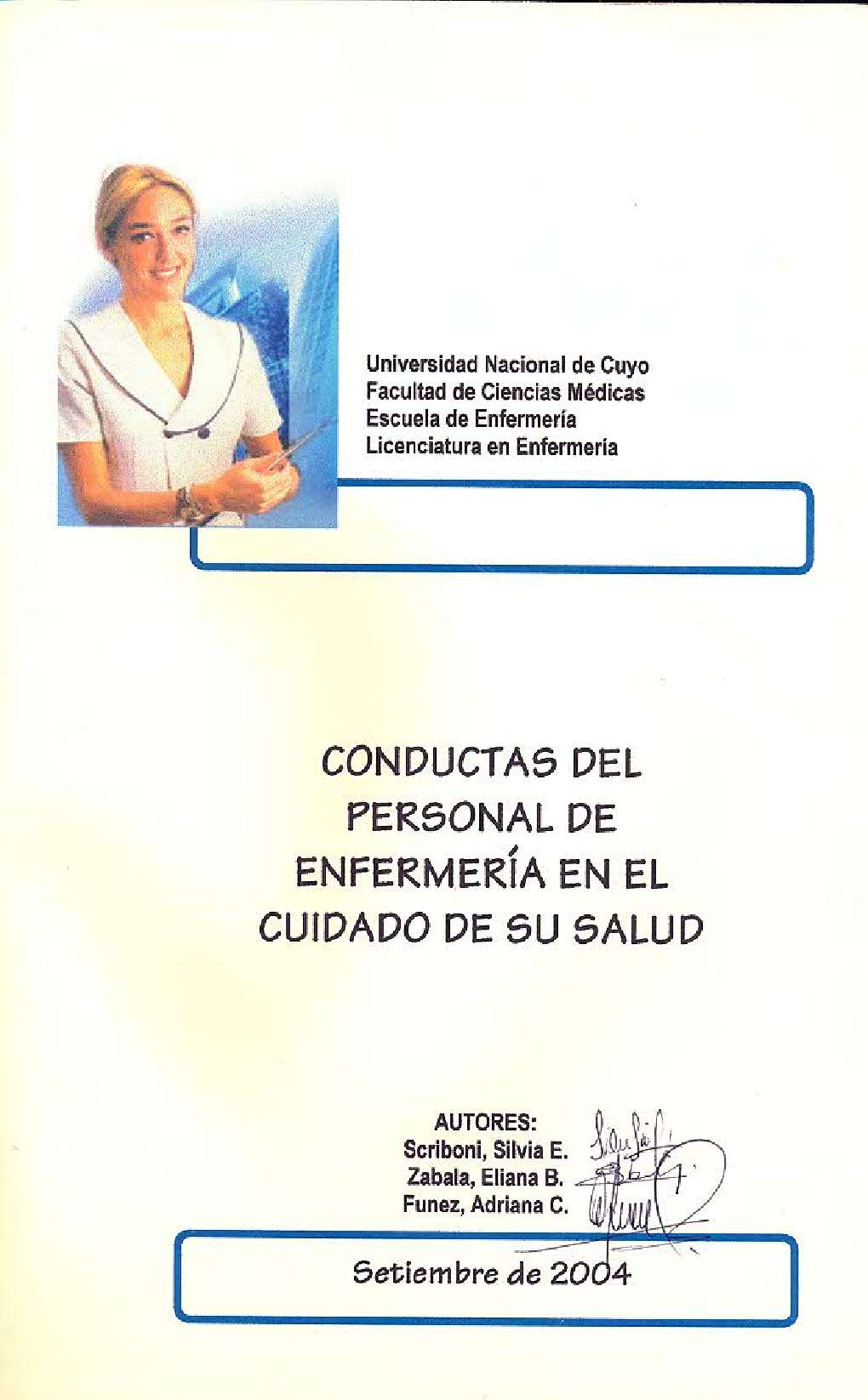 Universidad Nacional de Cuyo. Facultad de Ciencias Médicas. Escuela de Enfermería.