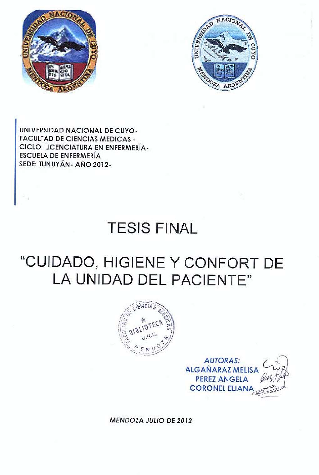 Universidad Nacional de Cuyo. Facultad de Ciencias Médicas. Escuela de Enfermería.