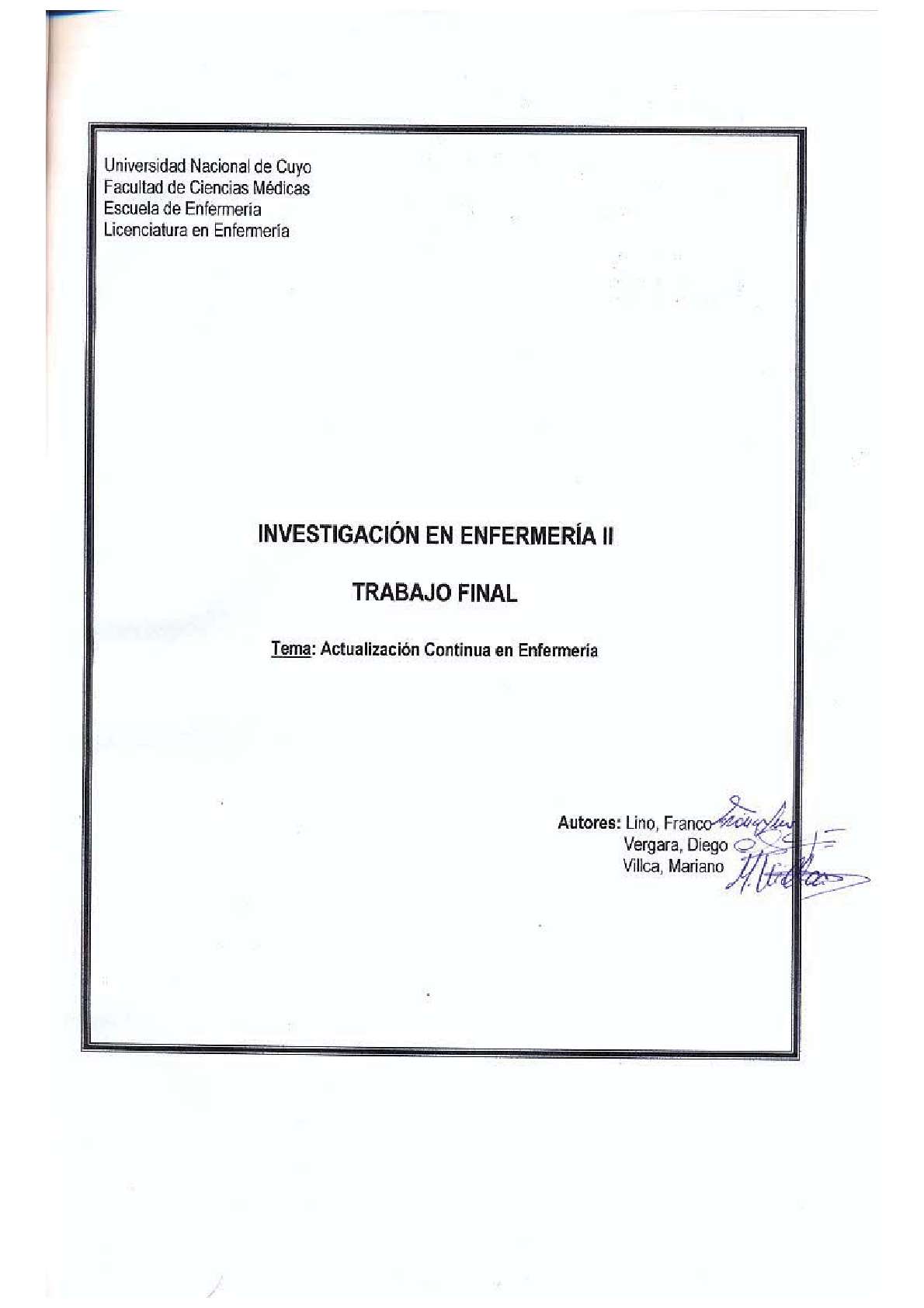Universidad Nacional de Cuyo. Facultad de Ciencias Médicas. Escuela de Enfermería.