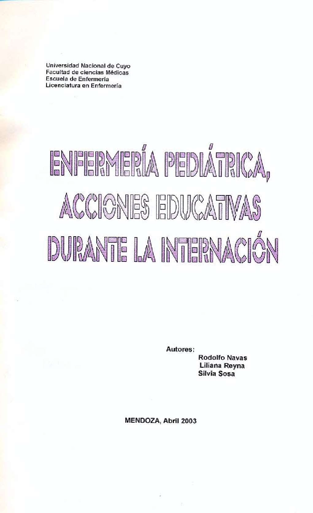 Universidad Nacional de Cuyo. Facultad de Ciencias Médicas. Escuela de Enfermería.
