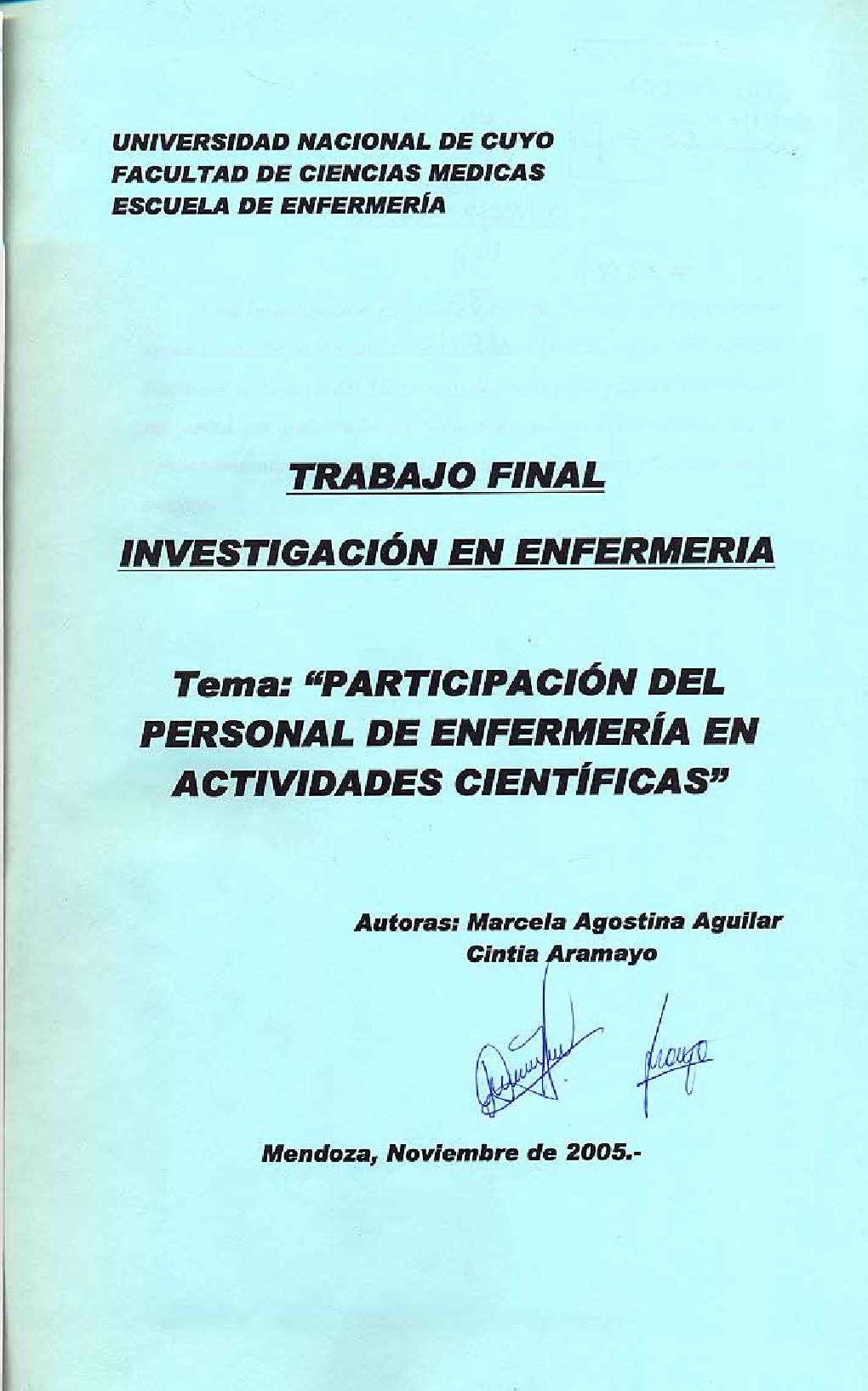 Universidad Nacional de Cuyo. Facultad de Ciencias Médicas. Escuela de Enfermería.