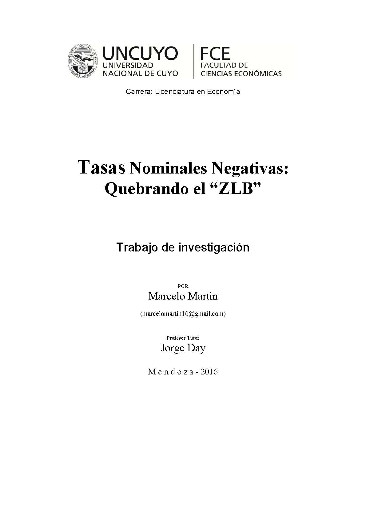 Martin Navarro, Marcelo Alejandro. (2015). Tasas nominales negativas: quebrando el ZLB (Tesina de grado). Mendoza, Universidad Nacional de Cuyo. Facultad de Ciencias Económicas.