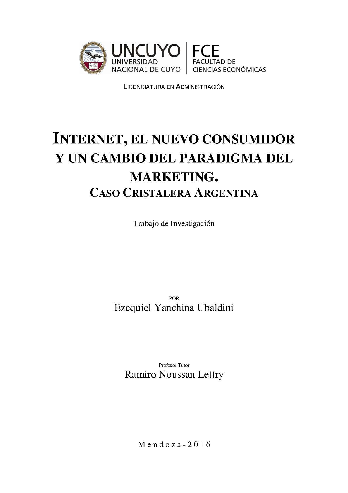 Yanchina Ubaldini, Ezequiel. (2016). Internet, el nuevo consumidor y un cambio del paradigma del marketing: caso Cristalera Argentina (Trabajo final de grado). Mendoza, Universidad Nacional de Cuyo. Facultad de Ciencias Económicas.