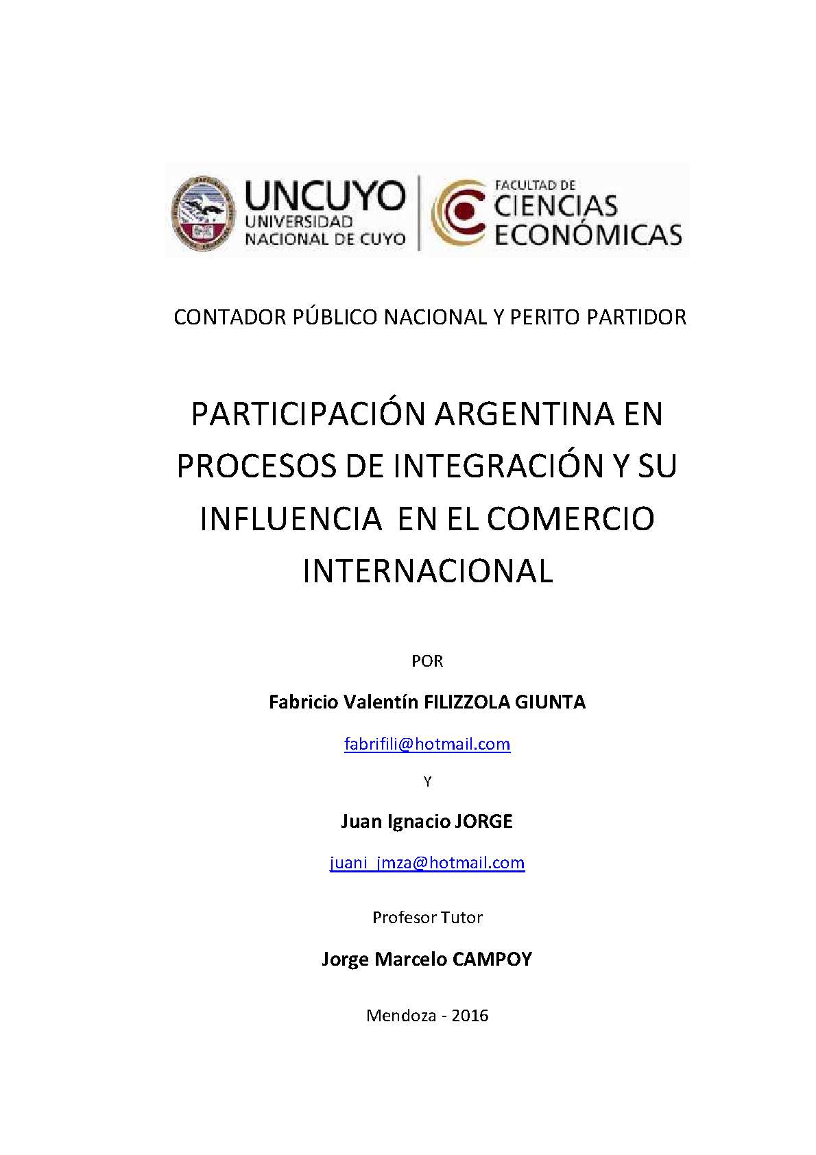 Filizzola Giunta, Fabricio; Jorge, Juan Ignacio . (2016). Participación argentina en procesos de integración y su influencia en el comercio internacional: (Trabajo final de grado). Mendoza, Universidad Nacional de Cuyo. Facultad de Ciencias Económicas.