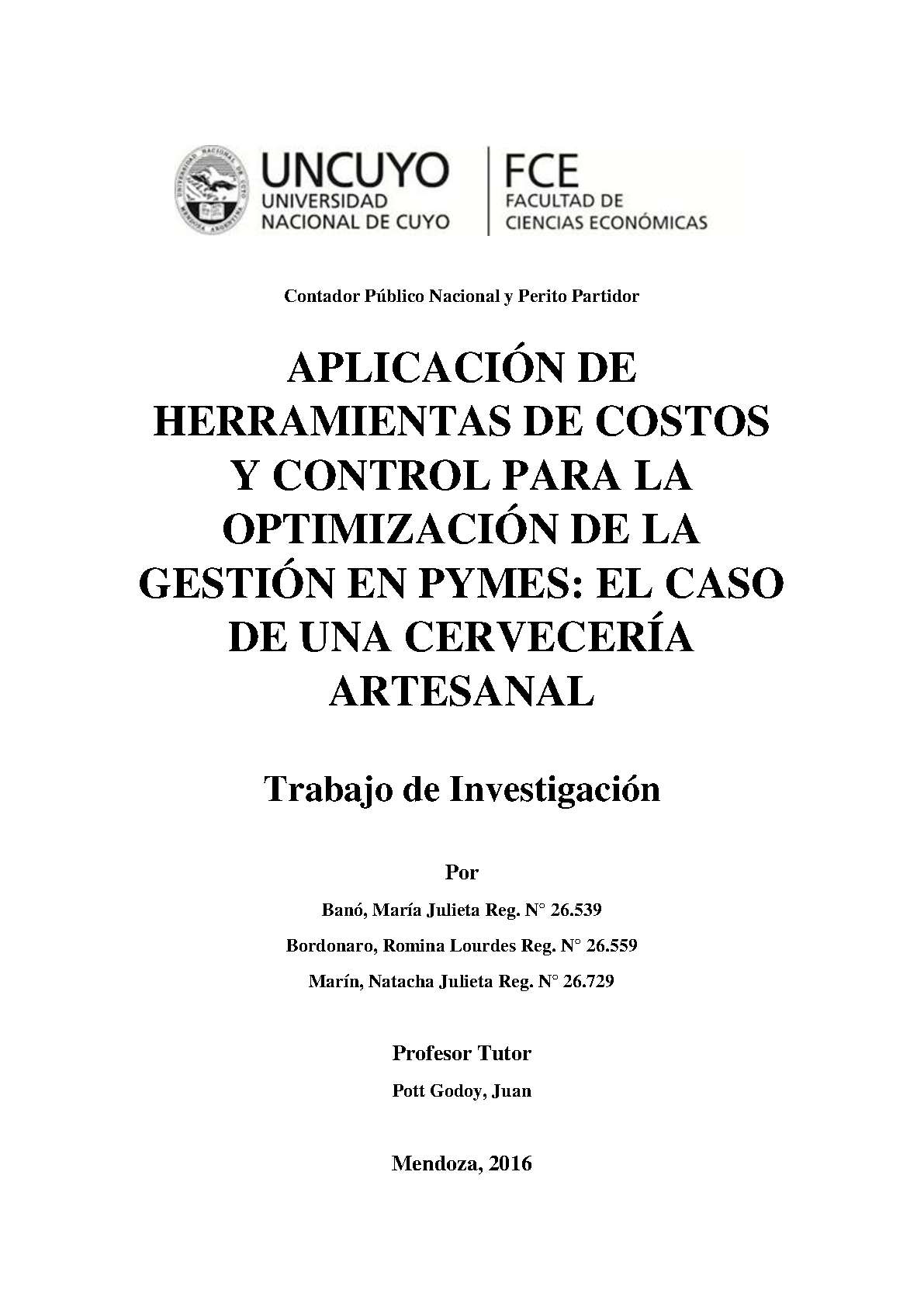 Marín, Natacha Julieta; Bordonaro, Romina Lourdes; Banó, María Julieta. (2016). Aplicación de herramientas de costos y control para la optimización de la gestión en PYMES: el caso de una cervecería artesanal (Trabajo final de grado). Mendoza, Universidad Nacional de Cuyo. Facultad de Ciencias Económicas.