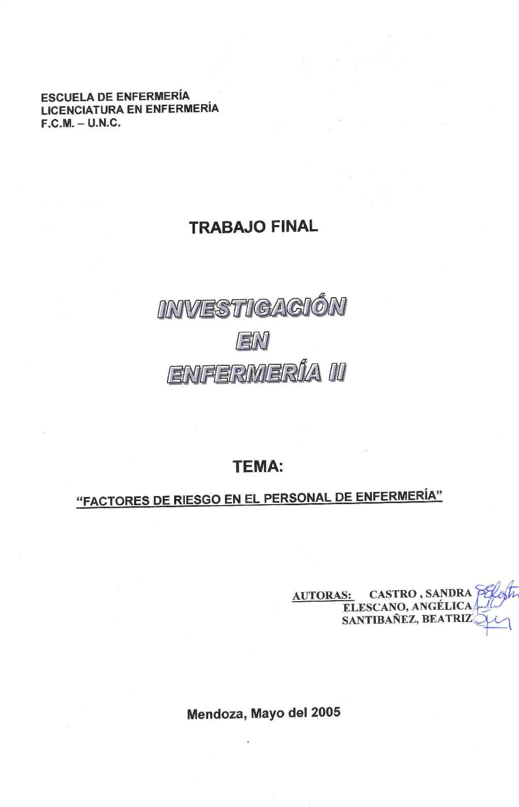 FACTORES DE RIESGO - PERSONAL DE ENFERMERÍA - HOSPITAL HUMBERTO NOTTI (GUAYMALLÉN, MENDOZA, ARGENTINA) - AGOTAMIENTO PROFESIONAL - ENFERMEDADES PROFESIONALES - RIESGOS LABORALES - ESTRÉS LABORAL