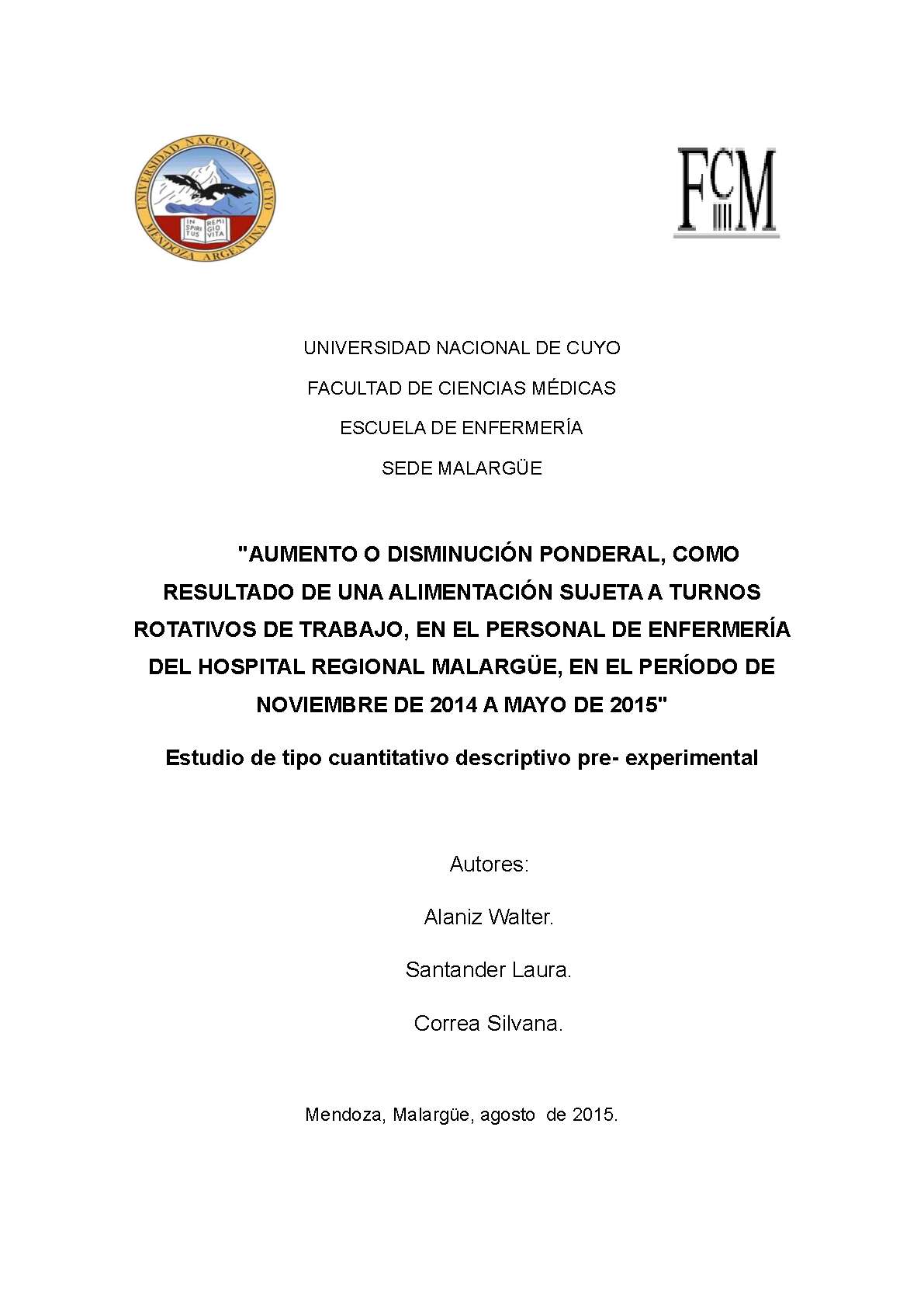 Aumento o disminución ponderal, como resultado de una alimentación sujeta a turnos rotativos de trabajo, en el personal de enfermería del Hospital Regional Malargüe, en el período de noviembre de 2014 a mayo de 2015