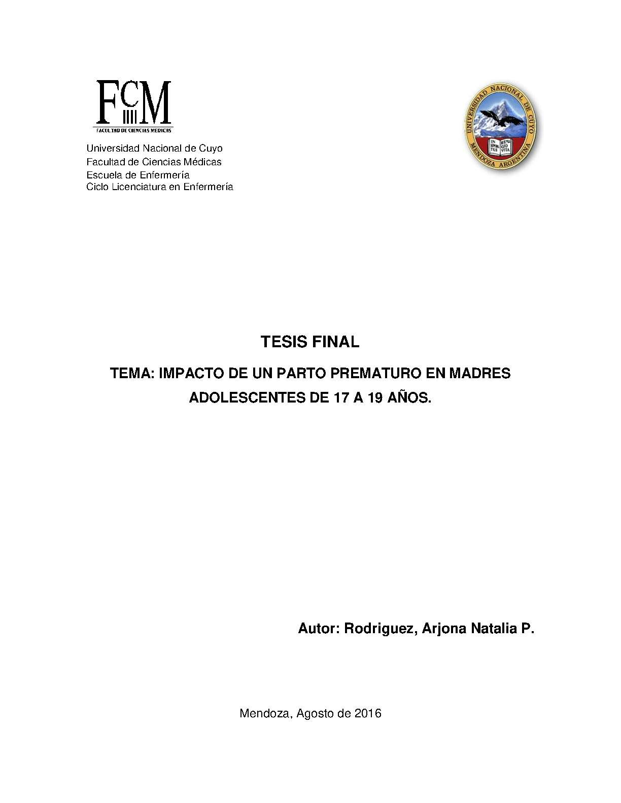 Universidad Nacional de Cuyo. Facultad de Ciencias Médicas. Escuela de Enfermería.