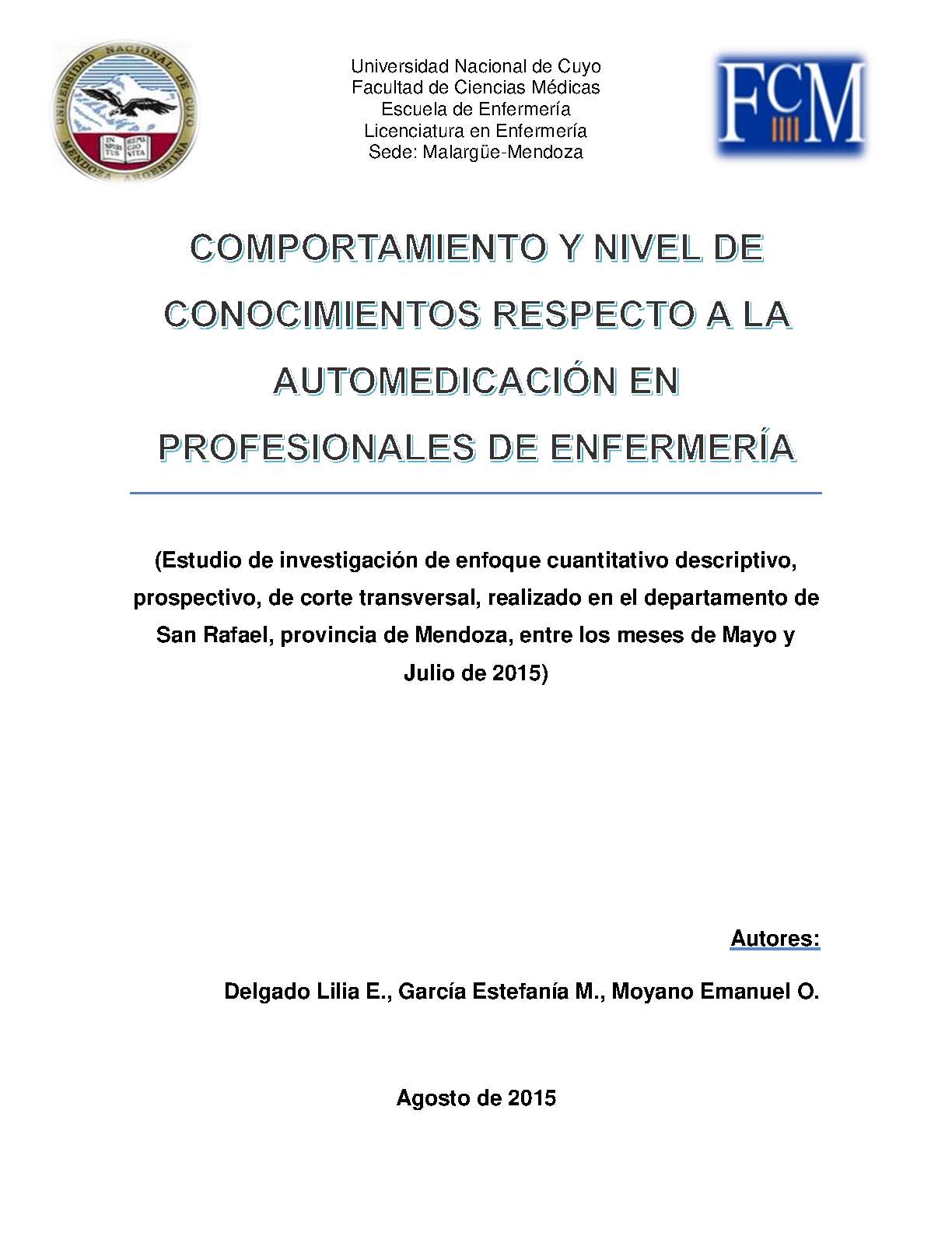 Universidad Nacional de Cuyo. Facultad de Ciencias Médicas. Escuela de Enfermería.