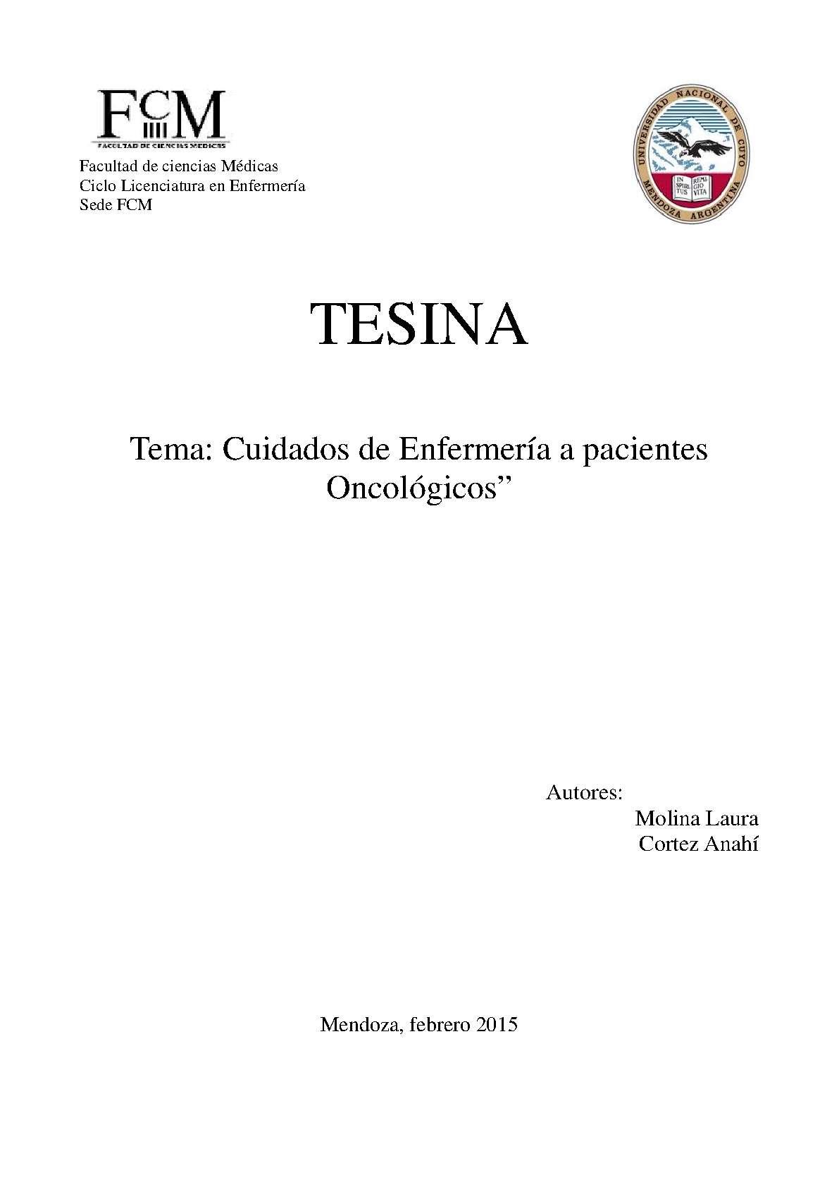 El cáncer es una enfermedad causante de un gran número de muertes, siendo un proceso de crecimiento y diseminación incontrolados de células, invadiendo el tejido circundante. Además puede provocar metástasis en puntos distantes del organismo. Un porcentaje puede mejorarse mediante cirugía, radioterapia o quimioterapia. La valoración del paciente oncológico permite a los enfermeros saber y ubicarse dentro de qué contexto social, cognitivo y de salud se encuentra cada paciente. Si bien es importante, la valoración no debe ser muy extensa, simplemente hay que seguir una secuencia valorativa, organizada y sistemática. Para esto es importante saber qué preguntar, qué mirar y qué datos son relevantes para el tratamiento y seguimiento del paciente. Es por ello que este trabajo de investigación tiene como objetivo estudiar y analizar la importancia del conocimiento de los cuidados de enfermería a pacientes oncológicos y determinar la relación que hay entre dichos cuidados y la rotación permanente del personal de los servicios de Clínica Médica y Quirúrgica del Hospital Español de Mendoza en 2014. Es un estudio tipo cuantitativo y de corte transversal, de campo y microsociológica, con una muestra de 25 enfermeros encuestados.