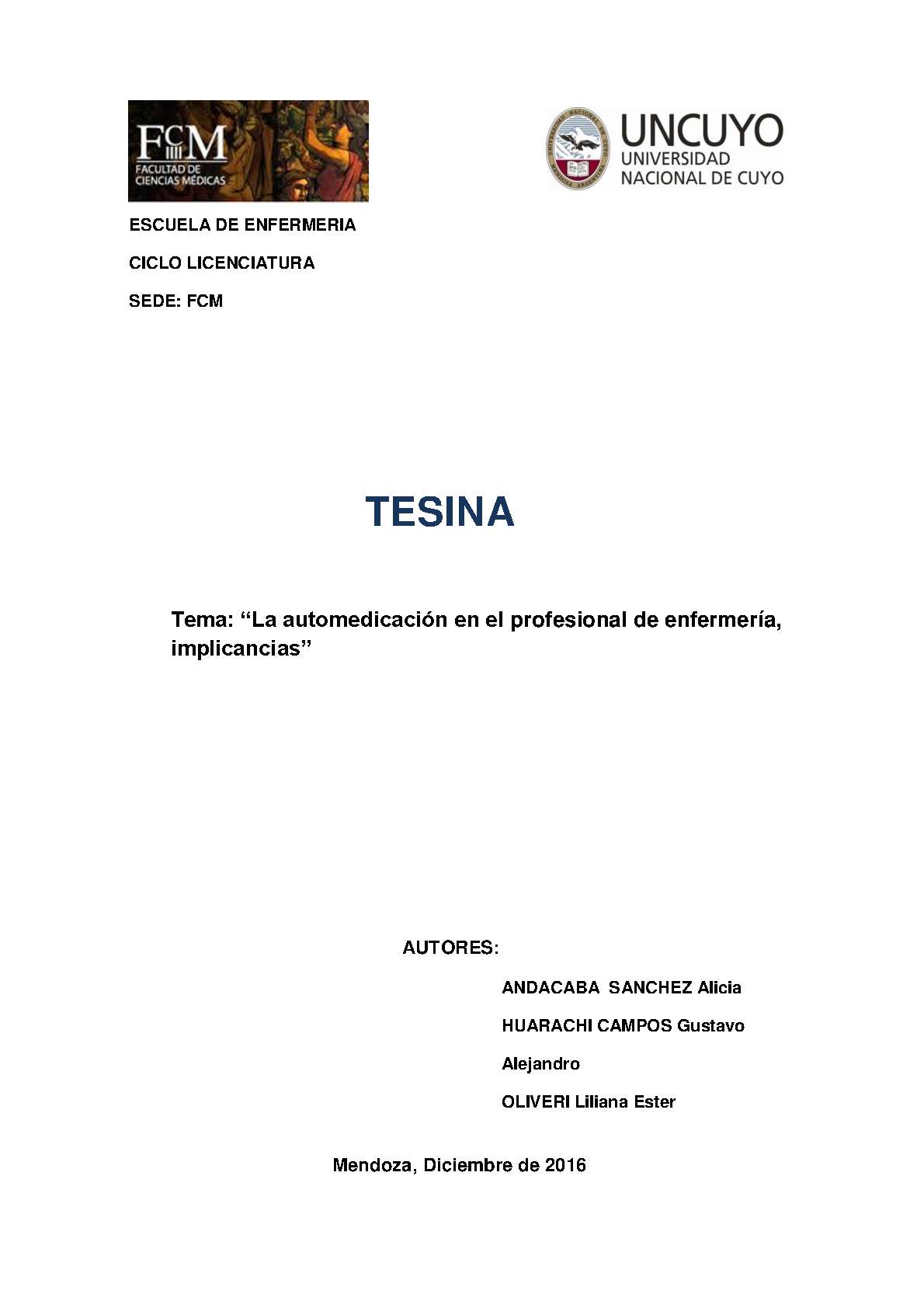 La automedicación se ha definido como la ingestión de medicamentos por iniciativas propias y sin obtener una evaluación, ni una orden médica. Esta práctica podría resultar en efectos colaterales, indeseados, producida por las sustancias ingeridas de manera irresponsable. El fenómeno de la automedicación es alarmante y frecuente. Las causas que favorecen el autoconsumo dependen de varios factores: culturales, sociales, económicos, psicológicos y biológicos. Los profesionales de la salud están predispuestos a la automedicación debido a la alta carga de estrés. El inicio de la automedicación puede ser ocasional y volverse habitual. El personal de enfermería, en su práctica diaria, tiene fácil acceso a medicamentos y esto favorece la autoprescripción y automedicación. Inclusive con conocimientos teóricos y prácticos sobre el uso de estas sustancias y sus implicaciones, muchas veces pueden librarse de situaciones de incomodidad para enfrentar la jornada de trabajo. Este trabajo de investigación tiene como objetivo determinar cuáles son los factores que inciden en el personal de enfermería para que se automedique en los Servicios de Cirugía General, Cirugía Plástica y Quemados del Hospital Luis Lagomaggiore de la ciudad de Mendoza en el segundo cuatrimestre del año 2016. La población y muestra fue de 32 profesionales de la salud de los servicios mencionados que respondieron un cuestionario de preguntas cerradas.