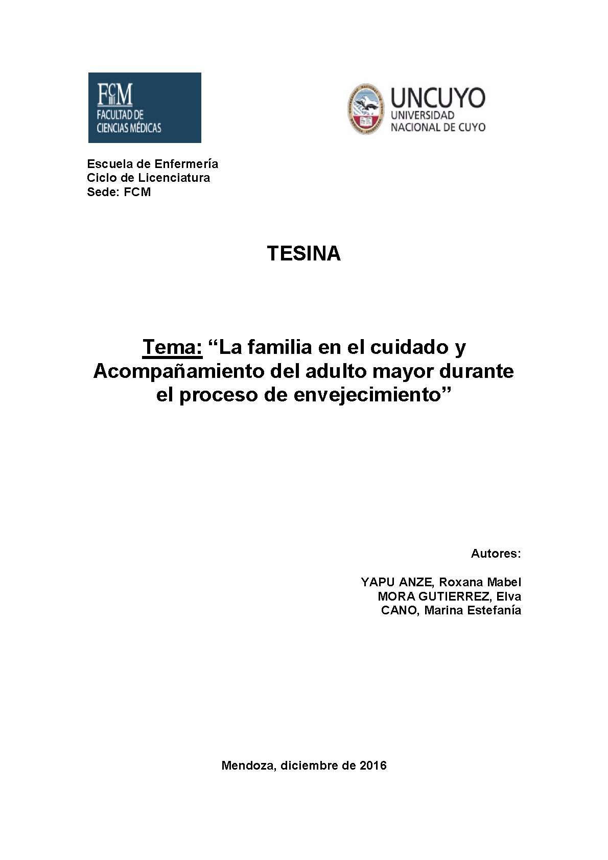 Universidad Nacional de Cuyo. Facultad de Ciencias Médicas. Escuela de Enfermería.