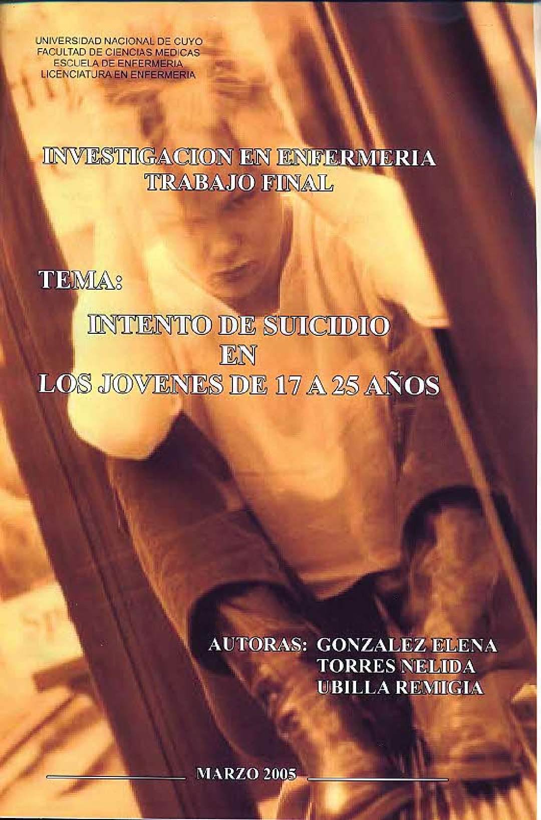 La palabra suicidio proviene de dos términos latinos SUI: de sí mismo y CAEDERE: matar. La valoración del riesgo de suicidio es una de las tareas más importantes y difícil de la psiquiatría de urgencia. Como el suicidio puede prevenirse, es obvia la importancia de una buena predicción y una intervención adecuada. Los actos suicidas se han producido en todas las épocas, culturas o sociedades y todas las edades. A pesar de que los índices suicidas se han mantenido más o menos estables en todo el mundo, se puede afirmar que estos se han incrementado de forma importante entre los adolescentes y jóvenes. Durante la adolescencia y los primeros años de juventud, se producen varios cambios a nivel psicológico, físico, social y familiar y se puede considerar a estas situaciones factores desequilibrantes que pueden desembocar en un intento de suicidio. El rol de enfermería en estos casos es fundamental, y el personal debe contar con conocimientos de cuáles son los factores que influyen en la toma de una decisión tan drástica y así realizar intervenciones eficaces y precisas que permitan disminuir los riesgos. Este trabajo de investigación tiene como objetivo conocer los factores de riesgo que inciden en los jóvenes de entre 17 a 25 años internados en el Hospital Carlos Pereyra; para que vuelvan a intentar suicidarse e identificar las intervenciones preventivas por parte del personal enfermero para evitar esto.