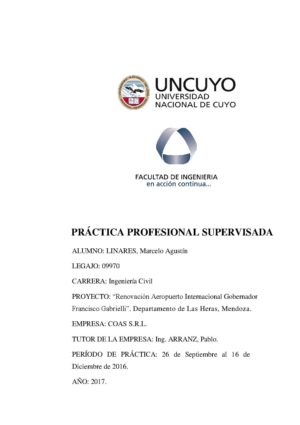 Linares, Marcelo Agustín. (2017). Renovación Aeropuerto Internacional Gobernador Francisco Gabrielli: Departamento de Las Heras, Mendoza (Práctica Profesional Supervisada). Mendoza, Universidad Nacional de Cuyo. Facultad de Ingeniería .